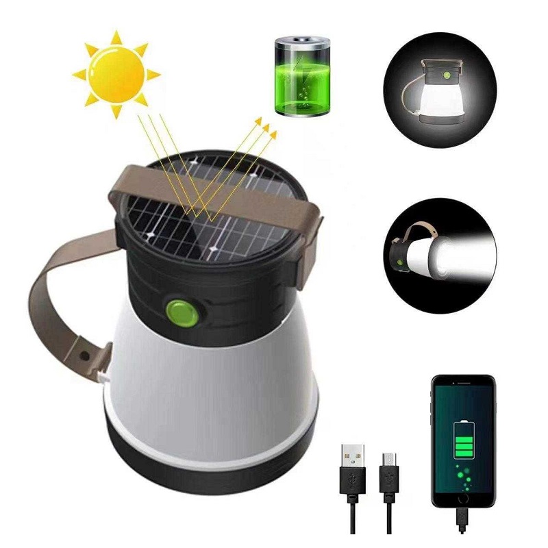 Επαναφορτιζόμενος φακός/φαναράκι LED με ηλιακό πάνελ στο επάνω μέρος για έξτρα αυτονομία μπαταρίας. Λειτουργεί ως φακός χάρη στο μπροστινό ισχυρό φακό led που διαθέτει ενώ λειτουργεί παράλληλα και ως φαναράκι χάρη στον περιμετρικό φωτισμό led. Ιδανικό για το camping και κάθε εξωτερική δραστηριότητα.Αυτονομία μπαταρίας: έως 4 ώρες Με λουράκι/χειρολαβή μεταφοράς. Το καλώδιο φόρτισης περιλαμβάνεται.