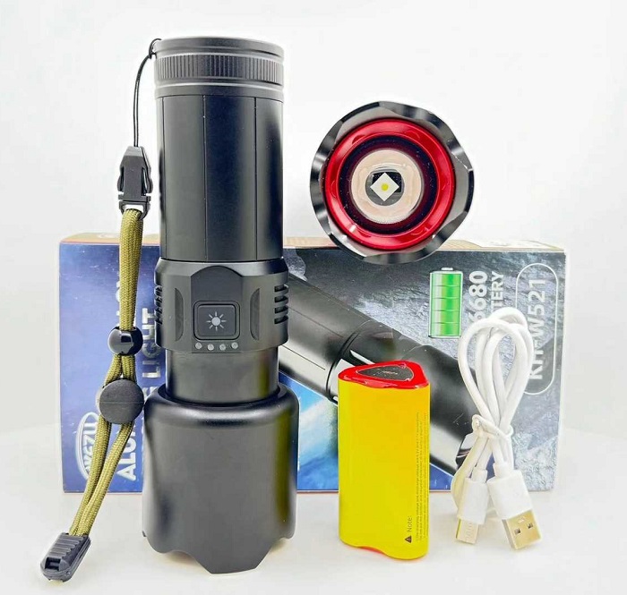 Επαναφορτιζόμενος φακός χειρός με ισχυρό φωτισμό και μεγάλη αυτονομία μπαταρίας, ιδιαίτερα ανθεκτικός, με εργονομικό σχεδιασμό, ιδανικός για κάθε είδους εξωτερική δραστηριότητα και σπορ.Φωτεινότητα: 1000 Lumens,SOS FlashΜπαταρία επαναφορτιζόμενη (περιλαμβάνεται),Αυτονομία μπαταρίας: έως 4 ώρες,Λυχνία ένδειξης μπαταρίας,Περίβλημα αλουμινίου υψηλής ανθεκτικότητας,Λουράκι χειρός,Διαστάσεις: 14 x 4cm.