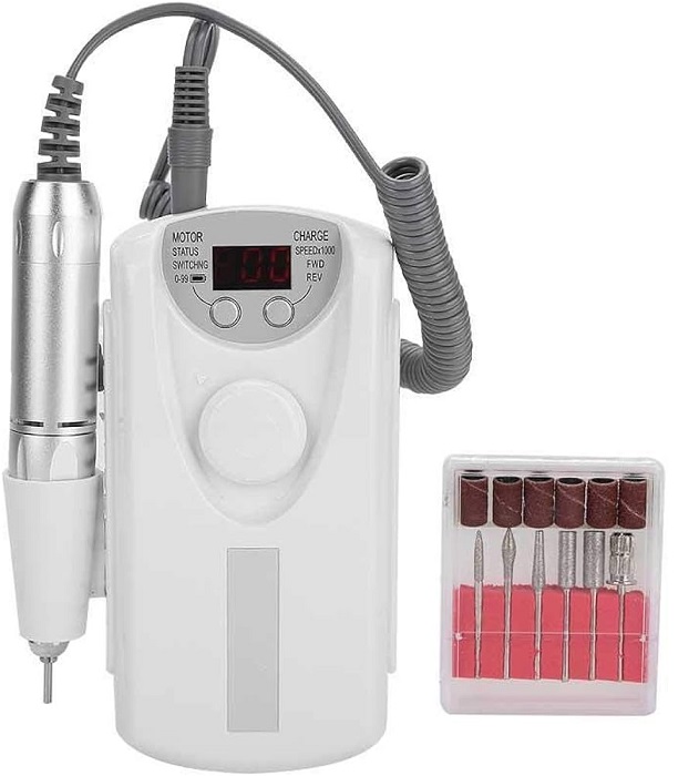Επαγγελματικός, επαναφορτιζόμενος τροχός μανικιούρ-πεντικιούρ με βάση στήριξης. Διαθέτει ρυθμιζόμενη ταχύτητα, λειτουργία μειωμένου θορύβου και δονήσεων και εργονομικό σχεδιασμό για εύκολη και άνετη χρήση.Χαρακτηριστικά: Ισχύς: 20W Δεξιόστροφη και αριστερόστροφη λειτουργία, Ψηφιακή οθόνη ενδείξεων, Ρυθμιζόμενη ταχύτητα: 1000-30000rpm, Προστασία από υπερθέρμανση, Προστασία από αντίστροφη ενεργοποίηση (καθυστέρηση αλλαγής 2 sec), Αυτονομία μπαταρίας έως 2 ώρες, Περιλαμβάνει: 6 φρέζες και 6 τροχολιθάκια.