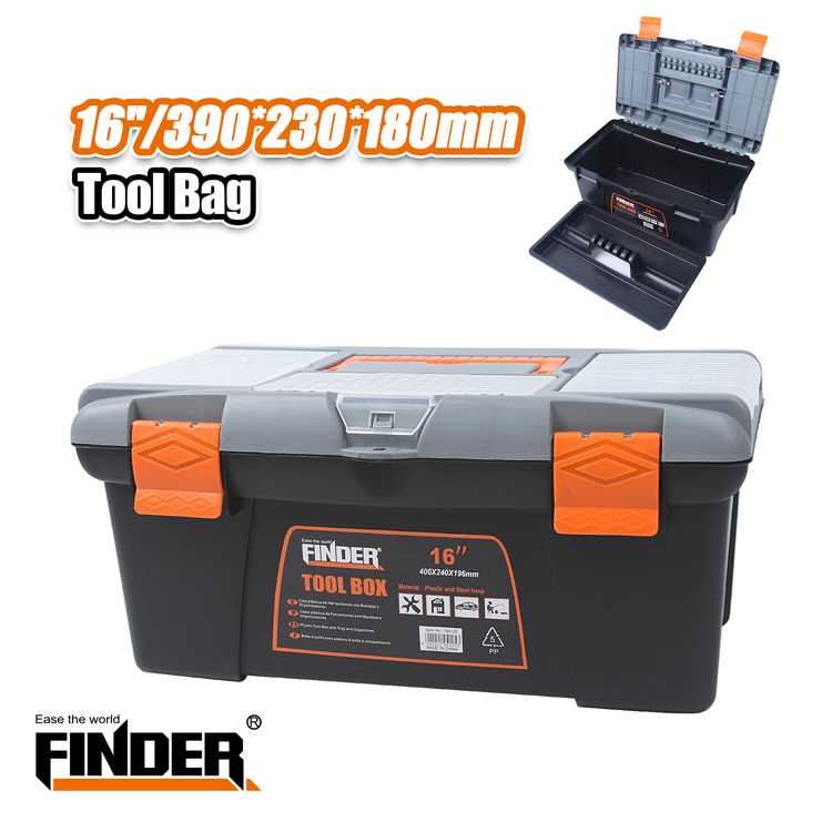 Πλαστική εργαλειοθήκη Finder μεγέθους 16” κατασκευασμένη από πλαστικό PP υψηλής ποιότητας και ανθεκτικότητας, με μεγάλη χωρητικότητα.Διαθέτει κλιπς για κλείσιμο ασφαλείας και χειρολαβή.Διαστάσεις: 39 x 23 x 18cm.