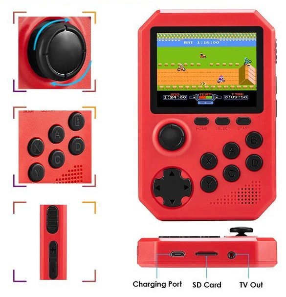 Η επαναφορτιζόμενη κονσόλα A6 είναι το ιδανικό δώρο για τους λάτρεις των Retro Games και θα χαρίσει ατέλειωτες ώρες παιχνιδιού, καθώς μπορεί να μεταφερθεί παντού, χάρη στο πρακτικό και μικρό μέγεθος της. Στιβαρή συσκευή με εξαιρετική ποιότητα κατασκευής! Διαθέτει πάνω από 500 διαχρονικά παιχνίδια και μπορεί να συνδεθεί και με την τηλεόραση αρκεί να υπάρχει υποδοχή AV ή ο κατάλληλος αντάπτορας.Τεχνικά Χαρακτηριστικά: Τύπος Οθόνης TFT 3,0”Ανάλυση Οθόνης: 1280×720360° joystickΔυνατότητα σύνδεσης σε TV με υποδοχή AVΘύρα SD CardΕπαναφορτιζόμενη μπαταρία 3.7v 1020mAhΧρόνος φόρτισης: 2 ώρεςΑυτονομία έως 4 ώρες.Διαστάσεις: 11 x 7 x 2cmΠεριεχόμενο συσκευασίας:ΠαιχνιδομηχανήΚαλώδιο ΦόρτισηςΚαλώδιο AV (για σύνδεση σε τηλεόραση)ΜπαταρίαΕγχειρίδιο Χρήσης (Αγγλικά)