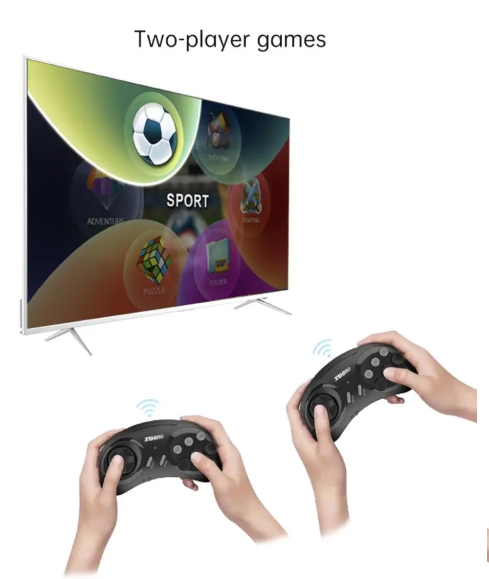 Ασύρματη κονσόλα παιχνιδιών με HDMI Stick και δύο ασύρματα χειριστήρια. Περιλαμβάνει ενσωματωμένα 600 κλασσικά παιχνίδια που λάτρεψαν μικροί και μεγάλοι, όπως Hello Kitty, space hunter, greedy snake, Batman κα.Πανεύκολη εγκατάσταση, χωρίς περιττά καλώδια, για ατελείωτο παιχνίδι με όλη την οικογένεια!Ιδανικό δώρο για τους λάτρεις των video games των 80’s – 90’s.Χαρακτηριστικά:Ανάλυση HDΑσύρματα χειριστήρια 2.4G με εμβέλεια έως 8 μέτρα Λειτουργούν με 2 μπαταρίες AAA – δεν περιλαμβάνονταιStick HDmi 2,4 g Mini Wireless Drive, επαναφορτιζόμενοΘύρα TF CardΓλώσσα: Αγγλικά Είσοδος: AC 220 V. Έξοδος: DC 1,5V/800ma . Μέγεθος χειριστηρίου : 14x2x6.5cm. Μέγεθος κονσόλας : 14.5x5x11cm.Περιλαμβάνονται : κονσόλα stick, καλώδιο USB, 2 χειριστήρια.