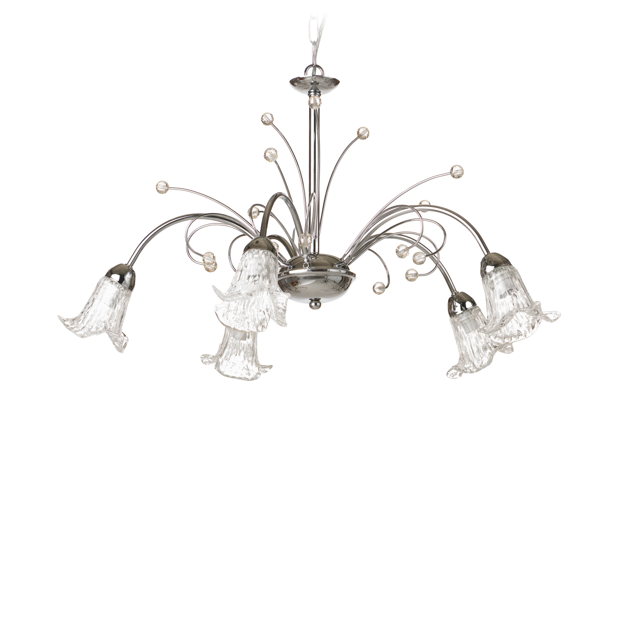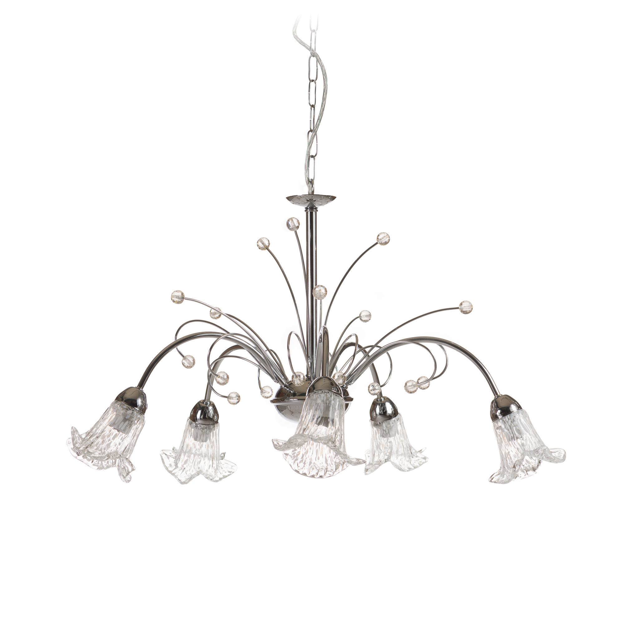 Φωτιστικό οροφής πεντάφωτο με βάση στήριξης κατασκευασμένη από μέταλλο άριστης ποιότητας και ανθεκτικότητας στη φθορά και στο χρόνο, σε νίκελ χρώμα. Διαθέτει θέσεις για πέντε λαμπτήρες Ε14 με φυσητά γυαλιά και φέρει διακοσμητικές χάντρες. Μία κλασική επιλογή που ταιριάζει σε κάθε διακόσμηση και με τη διαχρονική κομψότητά του θα προσφέρει μια ξεχωριστή ατμόσφαιρα στο σπίτι σας.-Δέχεται 5 λαμπτήρες E14(δεν συμπεριλαμβάνονται στην τιμή)