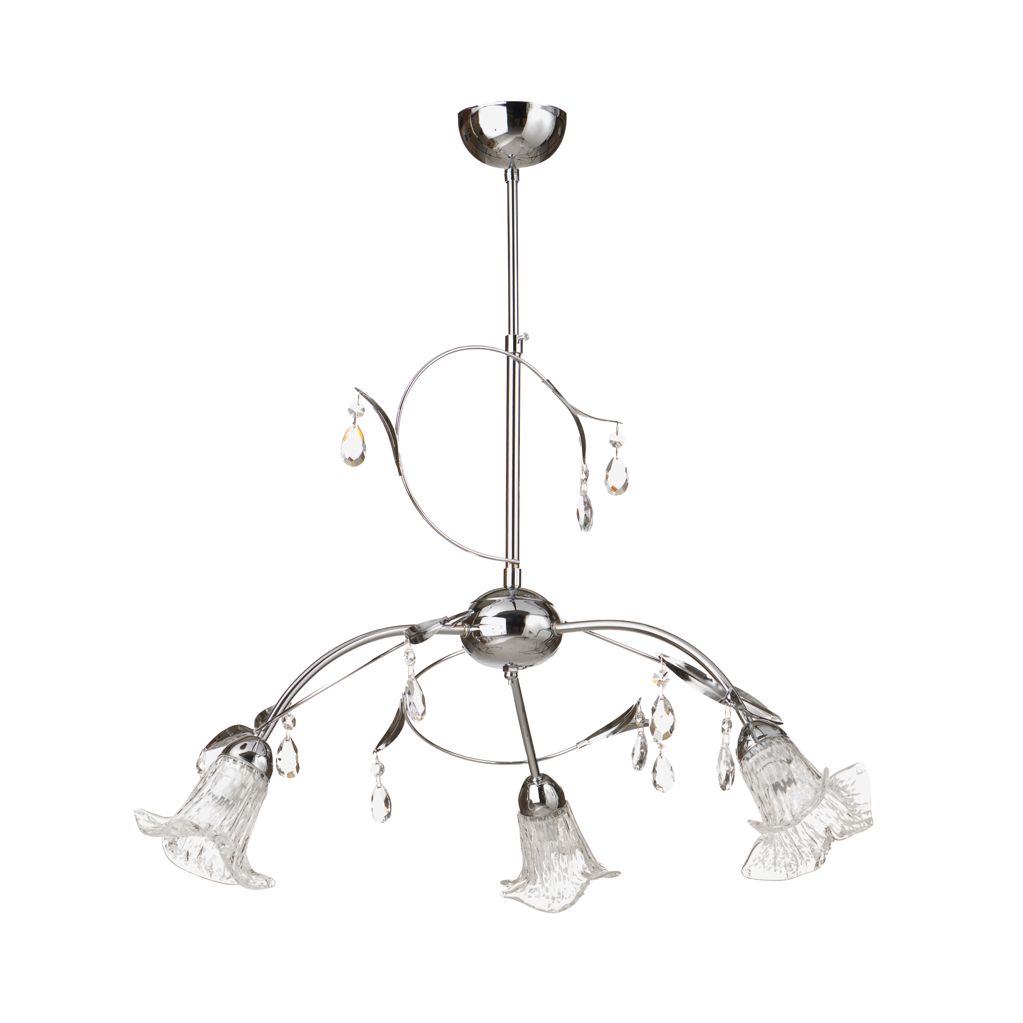 Φωτιστικό οροφής τρίφωτο με σκελετό κατασκευασμένο από μέταλλο εξαιρετικής ποιότητας και ανθεκτικότητας στη φθορά και στο χρόνο, σε νίκελ χρώμα. Διαθέτει τρεις θέσεις για λαμπτήρες με φυσητά γυαλιά. Φέρει διακοσμητικούς κρυστάλλους σε σχήμα αμυγδάλου οι οποίοι προσδίδουν μία επιπλέον πολυτέλεια στο σύνολο. Μία εντυπωσιακή επιλογή που συνδυάζει την κομψότητα και τη διαχρονικότητα και θα αναβαθμίσει τον χώρο που θα τοποθετηθεί. -Δέχεται 3 λαμπτήρες Ε14(δεν συμπεριλαμβάνονται στην τιμή)