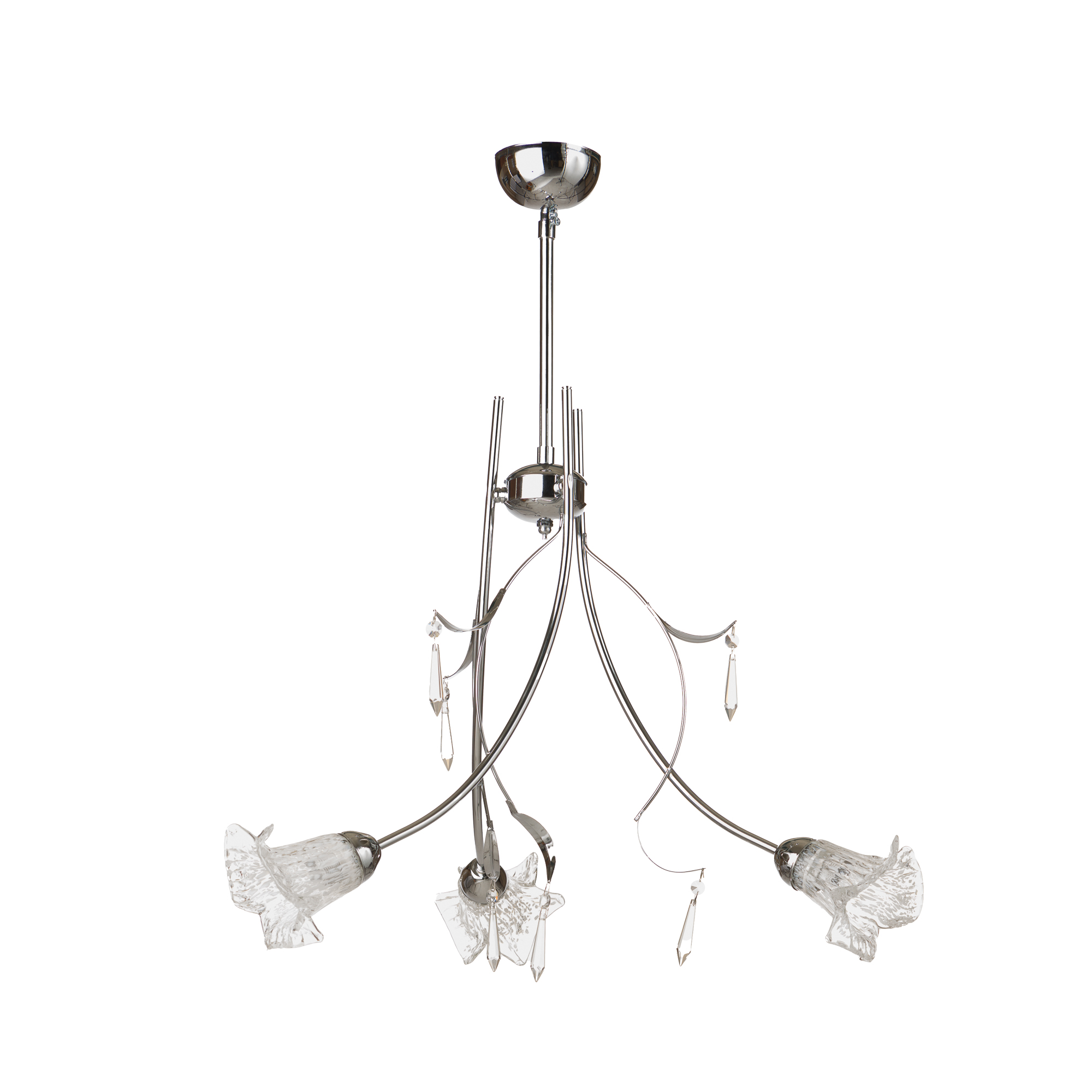 Φωτιστικό οροφής τρίφωτο με σκελετό κατασκευασμένο από μέταλλο εξαιρετικής ποιότητας και αντοχής στη φθορά και στο χρόνο, σε νίκελ χρώμα. Διαθέτει τρεις θέσεις για λαμπτήρες με φυσητά γυαλιά και διακοσμητικά κρυσταλλάκια. Ιδανική επιλογή για κάθε χώρο που θα εντυπωσιάσει καθώς χαρακτηρίζεται από τη φρεσκάδα του μοντέρνου ενώ παράλληλα διατηρεί τις κλασικές γραμμές.-Δέχεται 3 λαμπτήρες Ε14(δεν συμπεριλαμβάνονται στην τιμή)