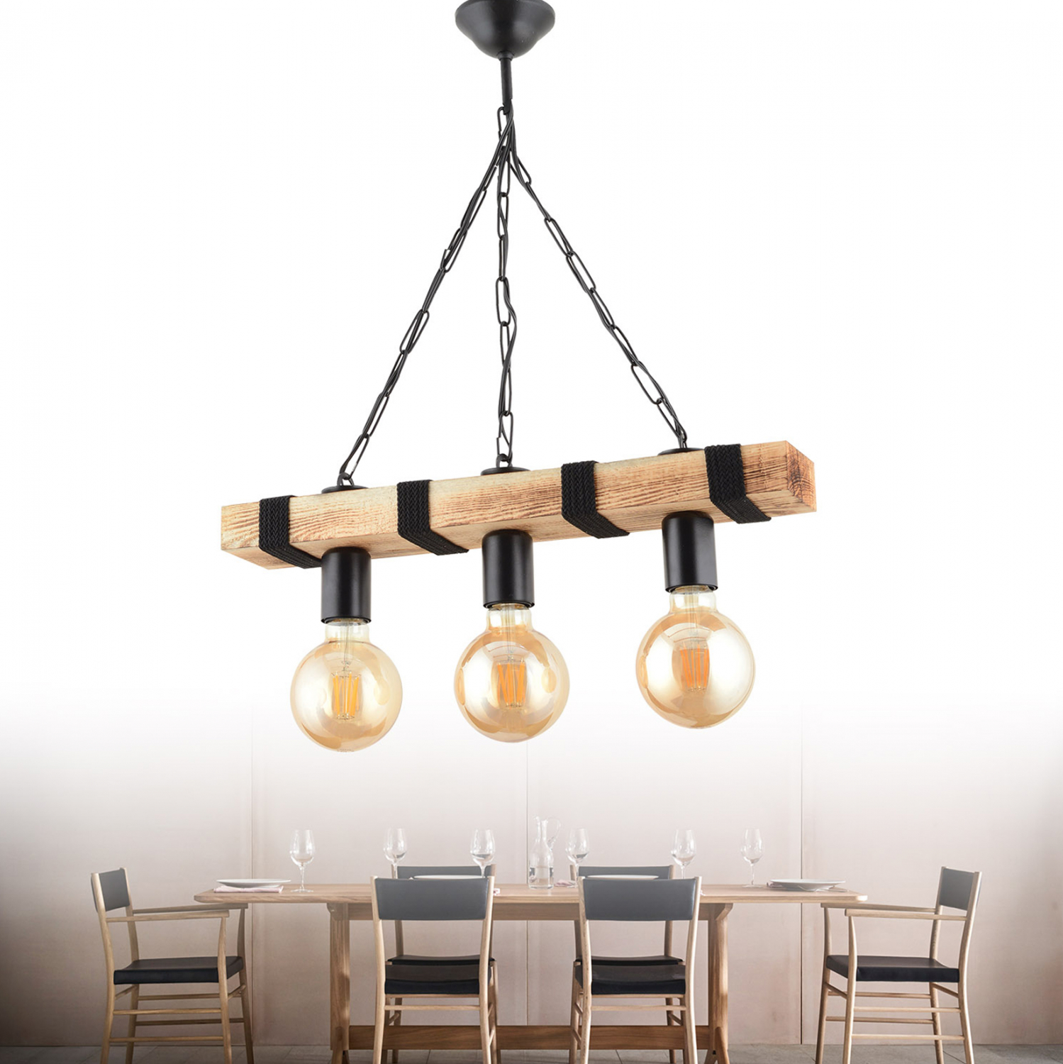Φωτιστικό “RAIL” τρίφωτο από ξύλο σε χρώμα μαύρο 50x15x65 E27