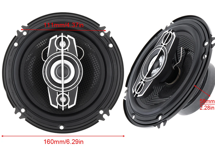 Μέγεθος: 6” – 160mm, RMS Power: 40W, Max Power: 500W, Αντίσταση: 4Ω, Ευαισθησία: 93db, Απόκριση συχνότητας: 60HZ-20KHZ, Περιλαμβάνονται 2 τεμάχια.