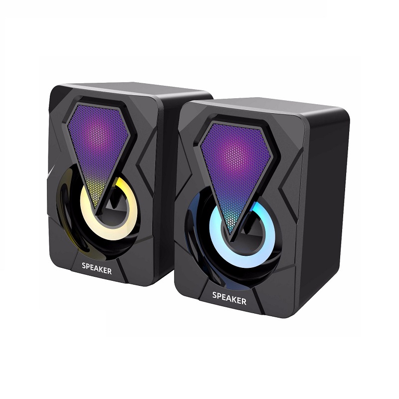Στερεοφωνικά ηχεία 2.0ch με μοντέρνο σχεδιασμό και εξαιρετική απόδοση ήχου συνολικής ισχύος 6W.Η τροφοδοσία τους πραγματοποιείται μέσω καλωδίου USB. Επιπλέον διαθέτουν LED RGB φωτισμό που προσαρμόζεται στο ρυθμό του ήχου σας και δημιουργεί ένα εντυπωσιακό οπτικό αποτέλεσμα.Τεχνικά Χαρακτηριστικά:Speaker system: USB 2.0Output: 2x 3W RMSMaximum power: 3.5WImpedance: 4ΩSignal to noise ratio: 58dBFrequency response: 20Hz – 20KHzDistortion: 80Hz – 20KHz?1%Διαστάσεις ηχείου: 7 x 8.5 x 12cmΒάρος συνολικό: 0.605kg