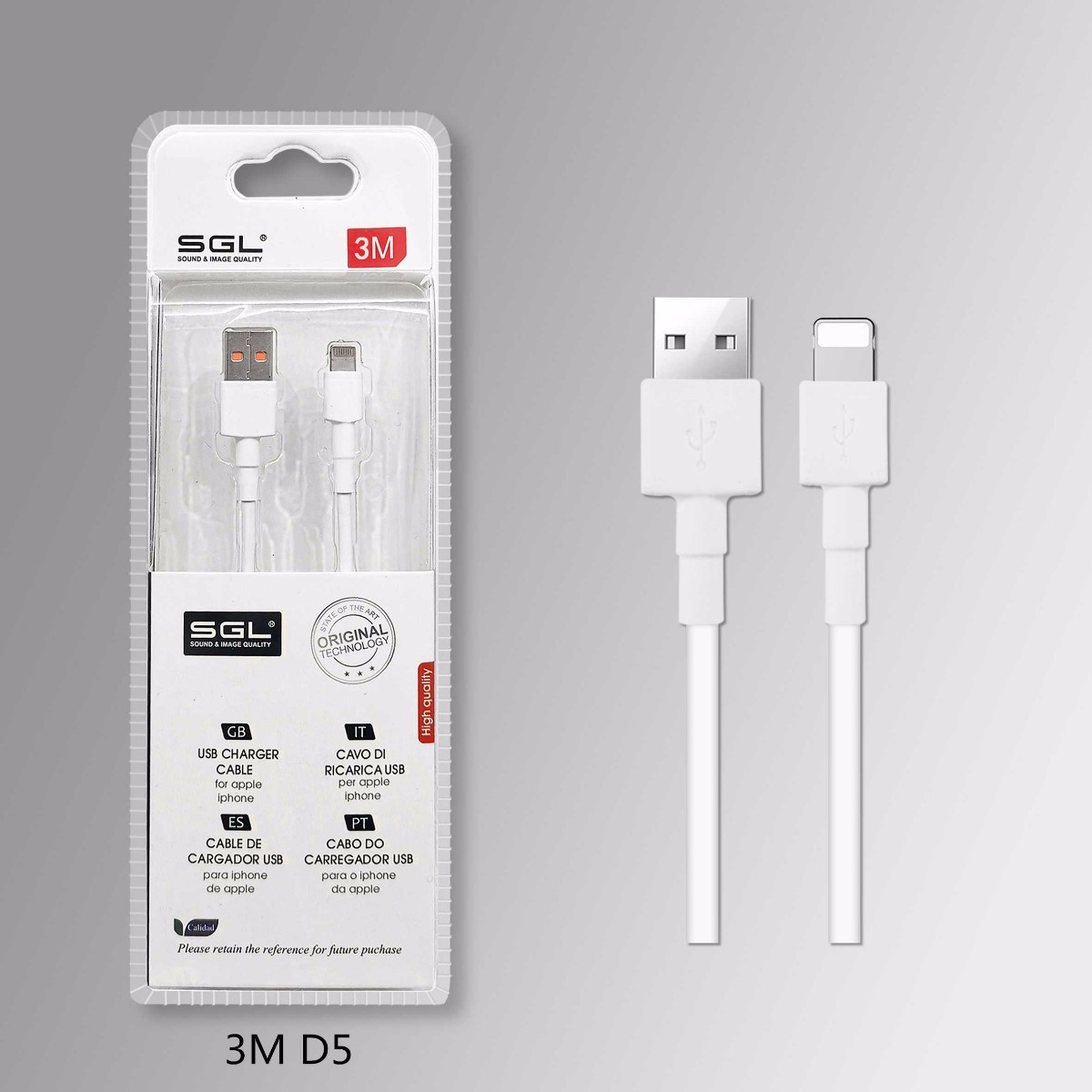 Καλώδιο φόρτισης USB to Lightning μήκους 3m – D5Διαστάσεις συσκευασίας: 20 Χ 8 εκατοστά.