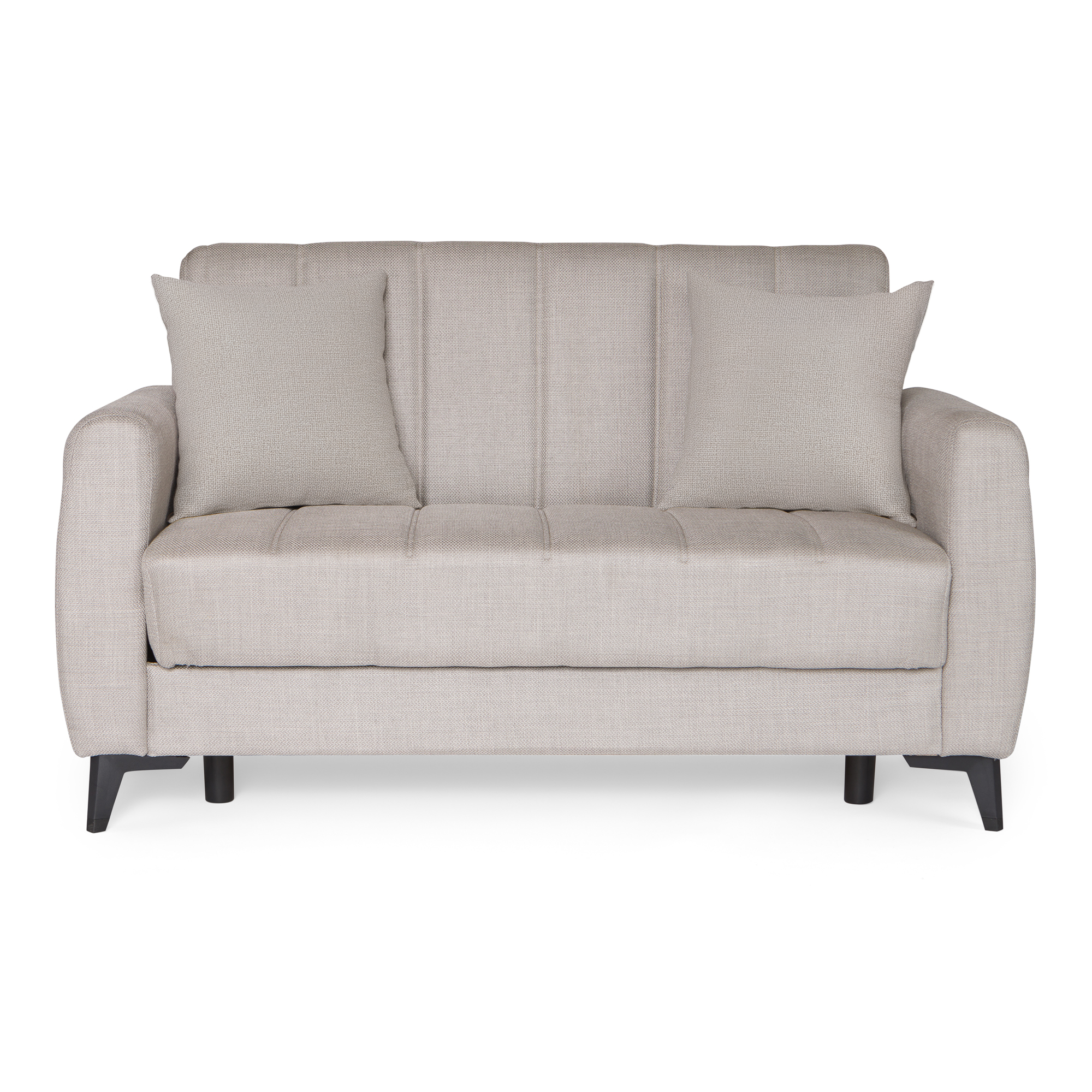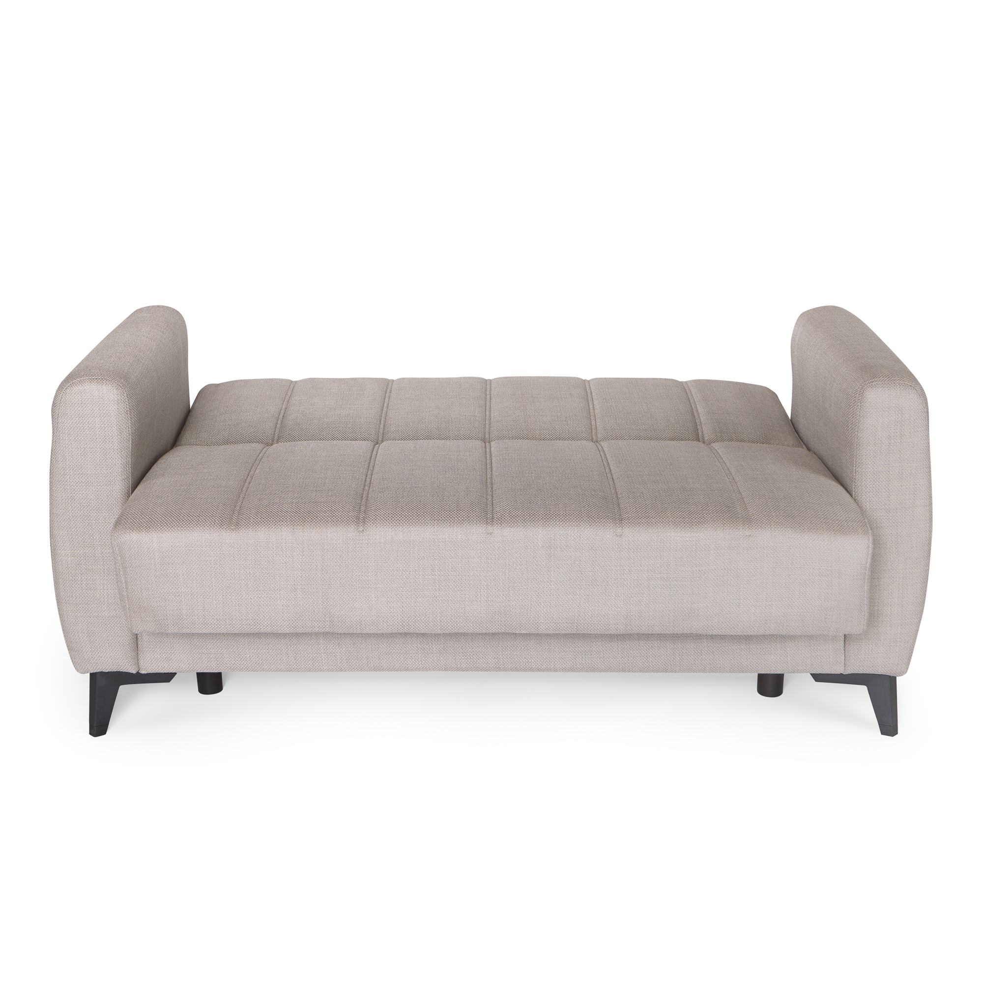 Καναπές-κρεβάτι με αποθηκευτικό χώρο διθέσιος Milos μπεζ-γκρι ύφασμα 148x78x85