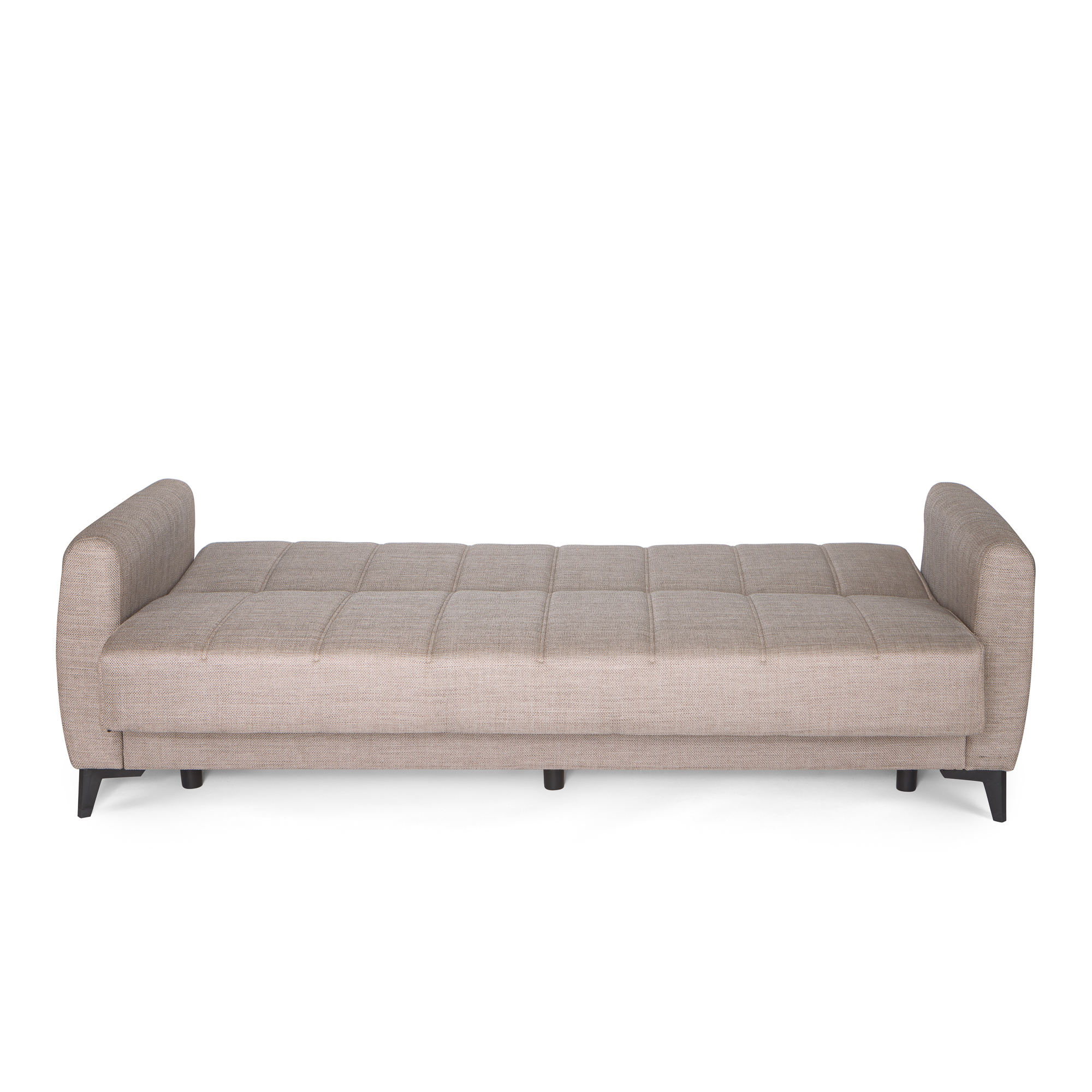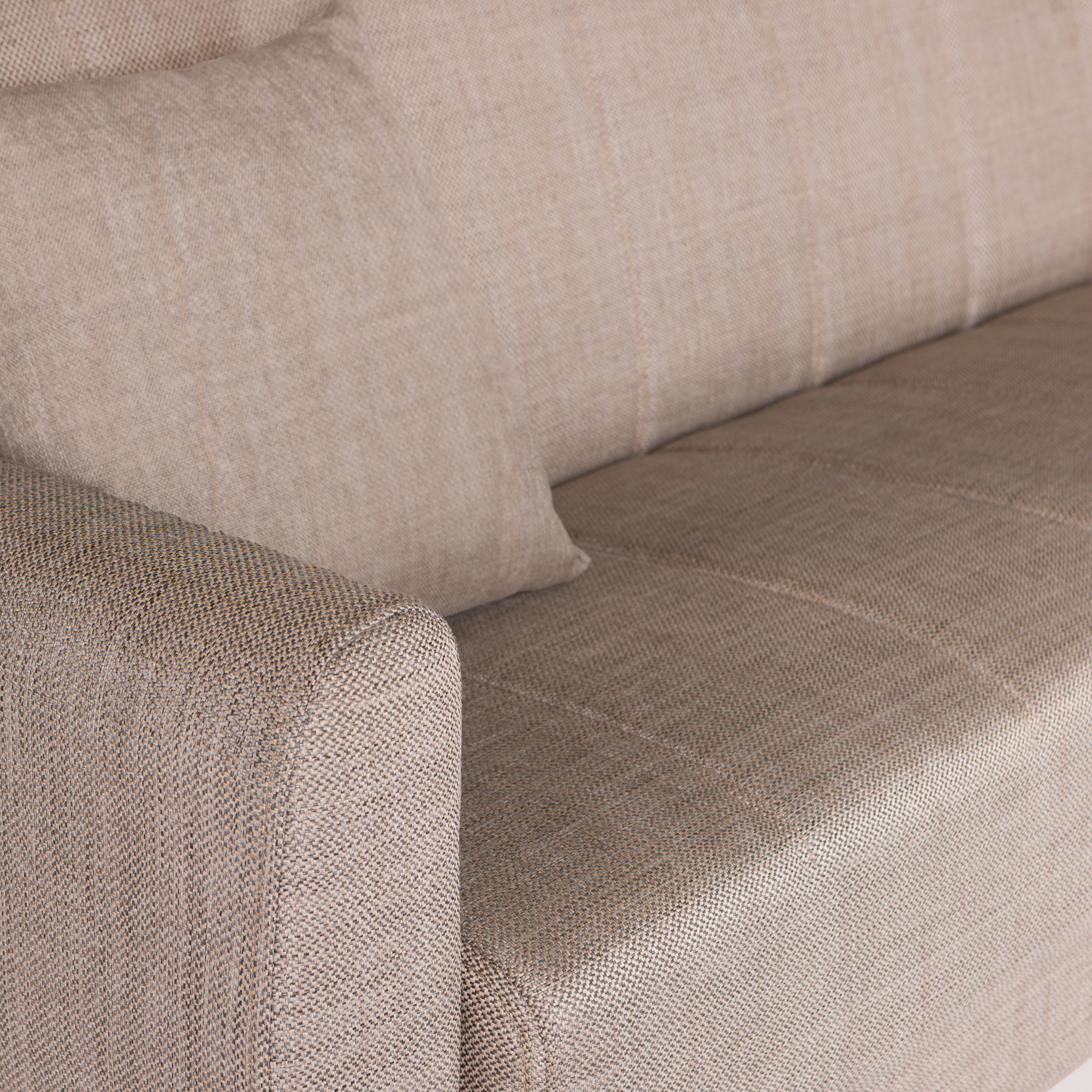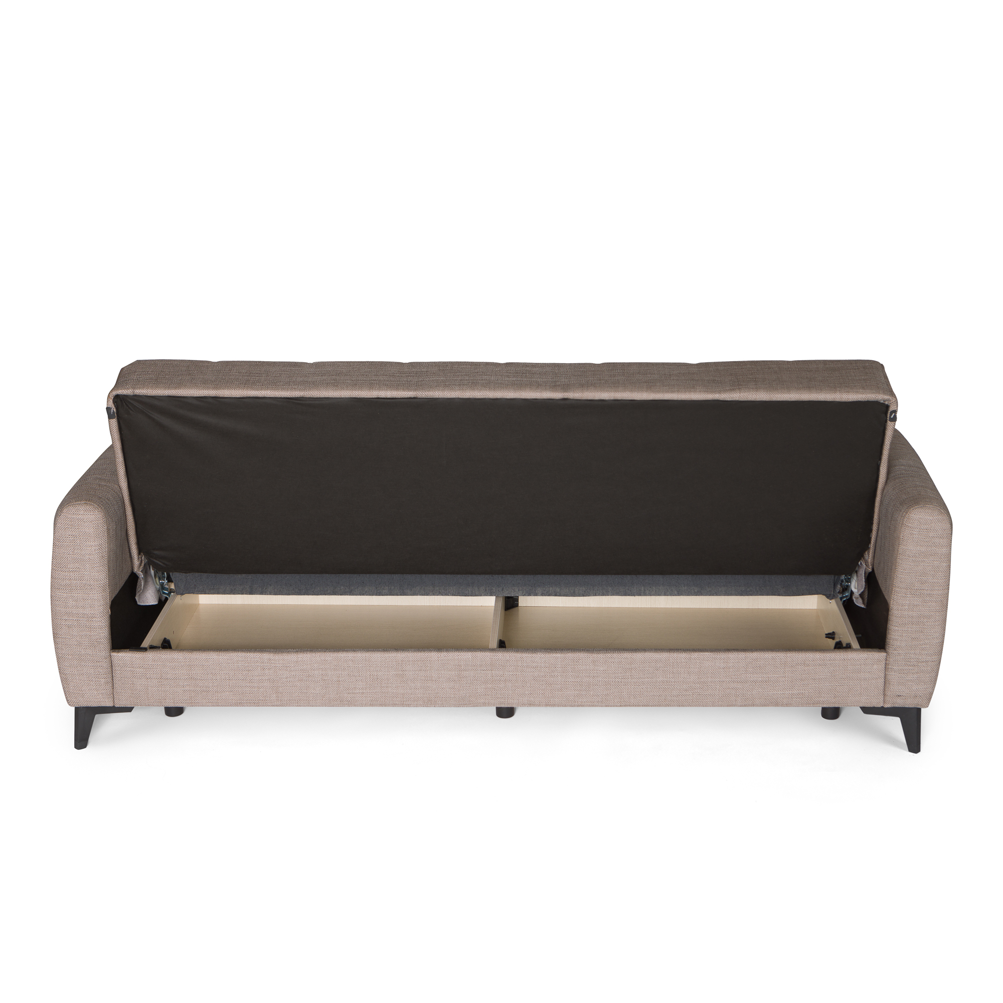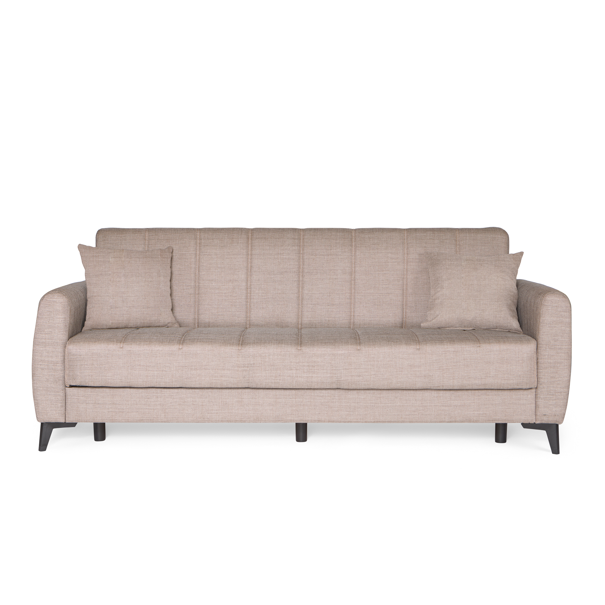 Καναπές-κρεβάτι με αποθηκευτικό χώρο τριθέσιος Milos μπεζ-καφε ύφασμα 210x78x85