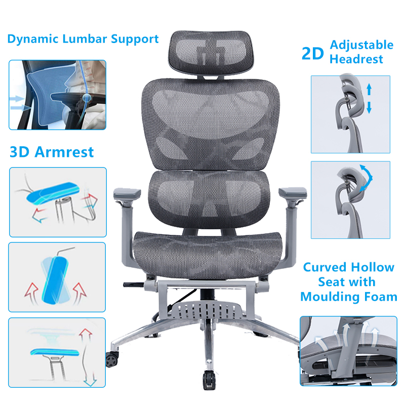 Καρέκλα γραφείου διευθυντή με υποπόδιο LINUX mesh γκρι 61x63x117/125