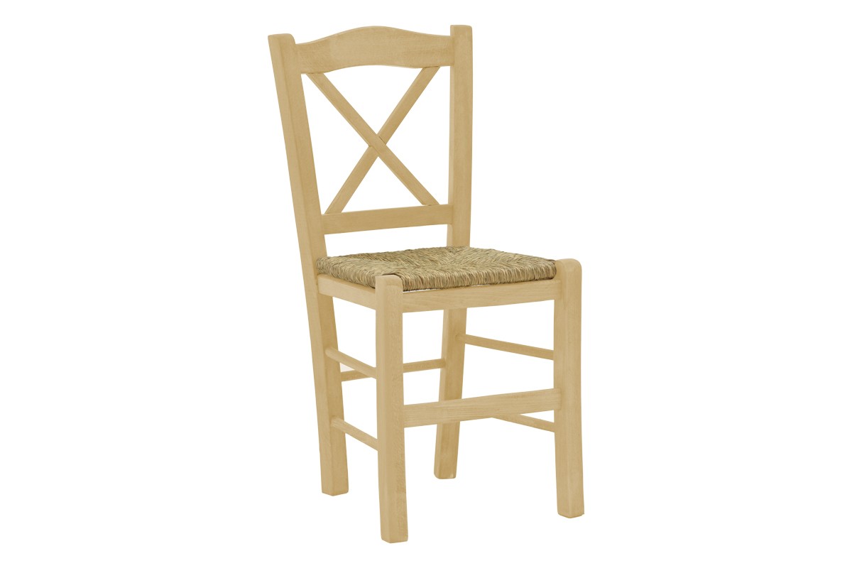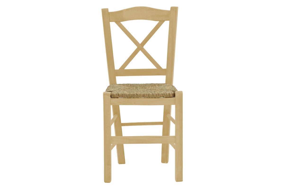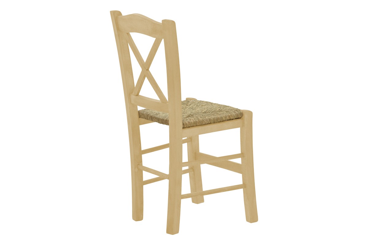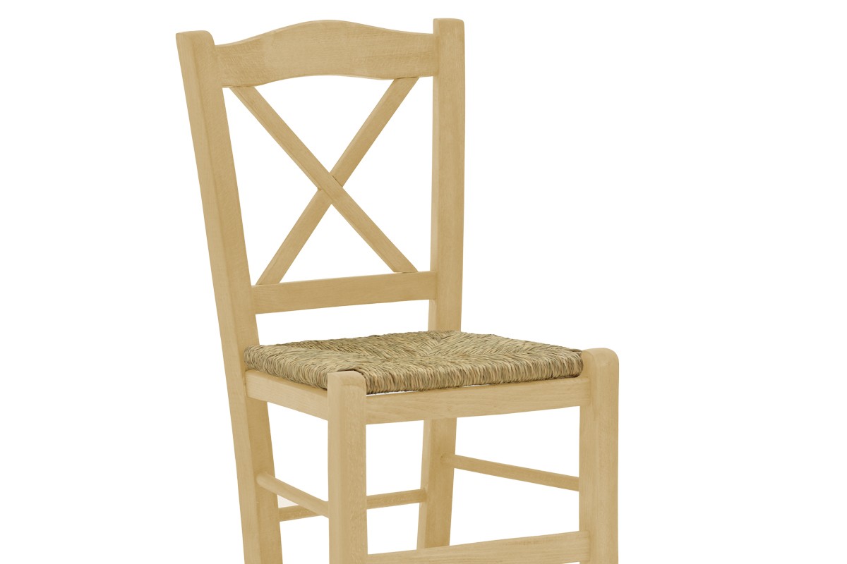 Καρέκλα καφενείου με ψάθα Santorini χιαστή άβαφο ξύλο 42x40x89εκ