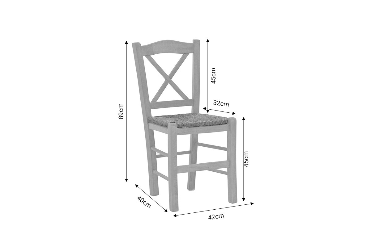 Καρέκλα καφενείου με ψάθα Χιαστή καρυδί ξύλο 42x40x89εκΕάν ψάχνεις ένα ανθεκτικό κάθισμα εμπνευσμένο από τη το στυλ της γαλλικού υπαίθρου σε Cross Back, η Χιαστή καρέκλα είναι εδώ για εσένα.Ιδανικό για τον εξοπλισμό και τη διακόσμηση του σπιτιού και του επαγγελματικού σου χώρου. Tαιριάζει άψογα σε χώρους Airbnnb, συνεστιάσεων, εστιατόρια και καφέ. Δώστε άλλο ύφος στον εξωτερικό σας χώρο. Αποτελεί κατάλληλη επιλογή για κήπους, μπαλκόνια και βεράντες με άποψη.Τεχνικά χαρακτηριστικά:* Πλάτη και έδρα κατασκευασμένες από ξύλο εξαιρετικής ποιότητας με μεγάλη αντοχή.* Ο σχεδιασμός της πλάτης σε σχήμα Cross Back, στηρίζοντας τη μέση με τη καμπύλη μορφή της. * Περιέχει ψάθα εξαιρετικής ποιότητας. Η ψάθα προσφέρει φυσική διαπνοή και άνεση στο κάθισμα, ενώ ταυτόχρονα προσθέτει ένα ιδιαίτερο στυλ στην εμφάνιση της καρέκλας. Η φυσική της παρουσία μπορεί να δημιουργήσει μια ευχάριστη αίσθηση εναρμόνισης με το φυσικό περιβάλλον, καθιστώντας την ιδανική για έναν άνετο και φιλόξενο χώρο καφενείου.* Προσφέρεται σε χρώμα καρυδί.Διάσταση καρέκλας:Μήκος: 42 εκ.Πλάτος: 40 εκ.Ύψος: 89 εκ.Ύψος έδρας: 49 εκΒάθος έδρας: 32 εκΎψος πλάτης: 45 εκΔιάσταση ψάθας:Μήκος: 35 εκΠλάτος: 35 εκΎψος: 2 εκΠαρατηρήσεις:Το προϊόν παραδίδεται μονταρισμένο στην εργοστασιακή του συσκευασία.Η χρωματική απόχρωση του προϊόντος ενδέχεται να διαφέρει ελαφρώς σε σχέση με την φωτογραφική απεικόνισή του στην οθόνη σας.