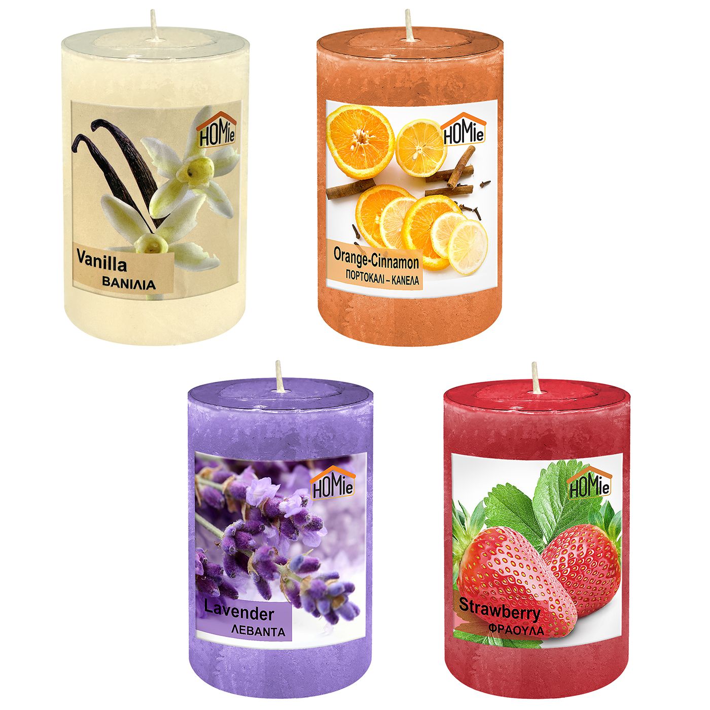Αρωματικό. Εκρού=βανίλια, κόκκινο=φράουλα, μώβ=λεβάντα ø7x10cm