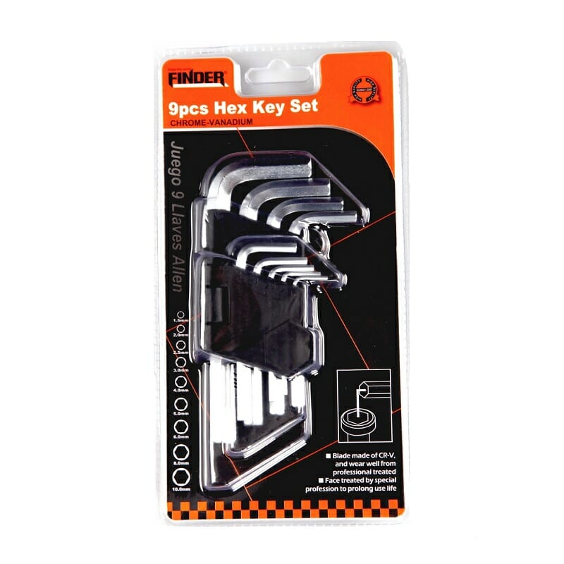 Κλειδιά Allen, Finder, σετ 9 τεμαχίων.Μεγέθη: 1.5 – 2 – 2.5 – 3 – 4 – 5 – 6 – 8 – 10 mmHardness: 48-50 HRC