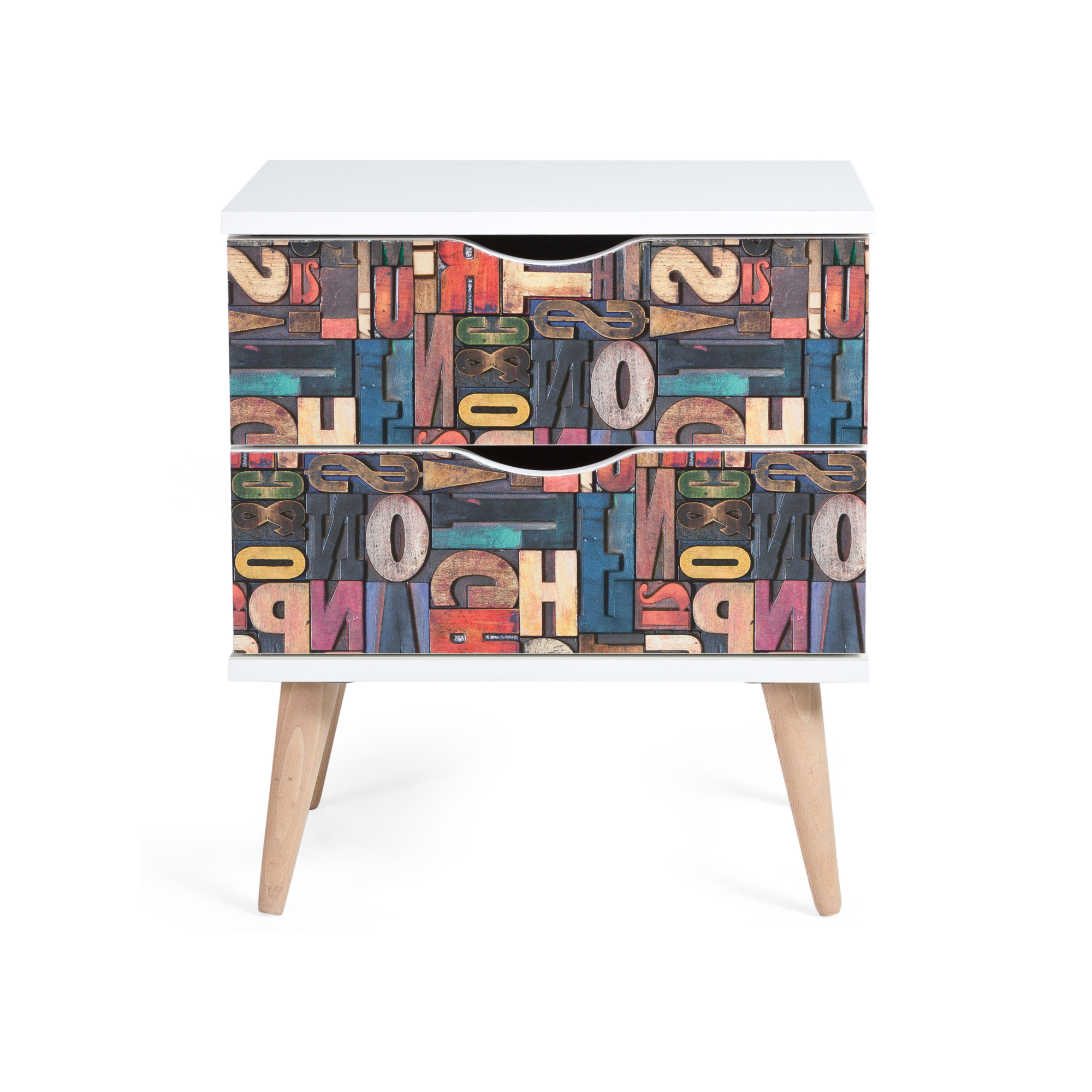 Κομοδίνο ”ADELE” με 2 συρτάρια σε χρώμα λευκό με patchwork λεπτομέρειες 45x36x50εκ