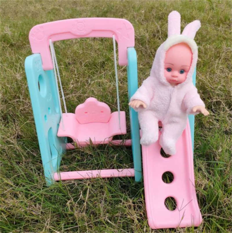 Κούκλα μωρό μίνι με σετ παιδική χαρά για συναρπαστικό παιχνίδι σαν ένα πραγματικό μωράκι!Διαστάσεις: 37 x 35 x 20cm.Πληροί όλα τα πρότυπα ασφαλείας. Κατάλληλο για παιδιά ηλικίας 3 ετών και άνω.