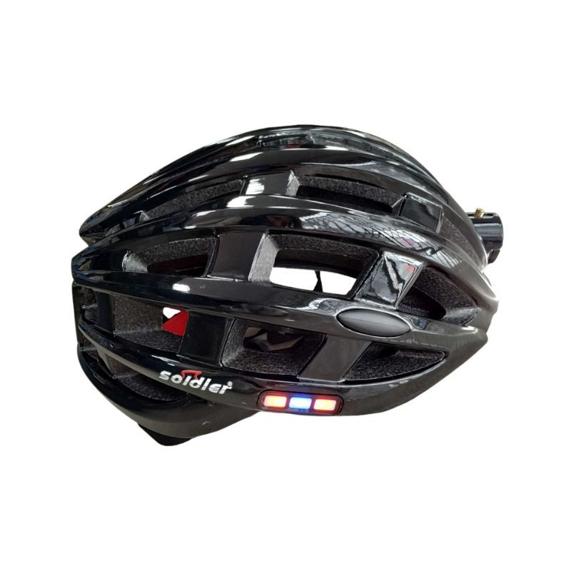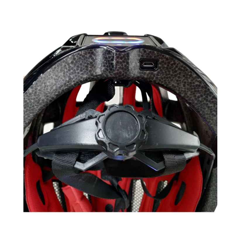 Κράνος ποδηλάτου με μπροστινό προβολέα LED και οπίσθιο φως πορείας κόκκινο/μπλε με 3 λειτουργίες φωτισμού.Προσφέρει ασφάλεια και πρακτικότητα. Διαθέτει αεραγωγούς, για γρήγορο εξαερισμό και άψογη αεροδυναμική. Η ασφάλιση/απασφάλιση του γίνεται πολύ εύκολα, ακόμα και με ένα χέρι. Ρυθμιζόμενος ιμάντας για τέλεια εφαρμογή Μαλακή και άνετη εσωτερική επένδυση. Διαθέτει ενσωματωμένη επαναφορτιζόμενη μπαταρία (περιλαμβάνεται καλώδιο φόρτισης)