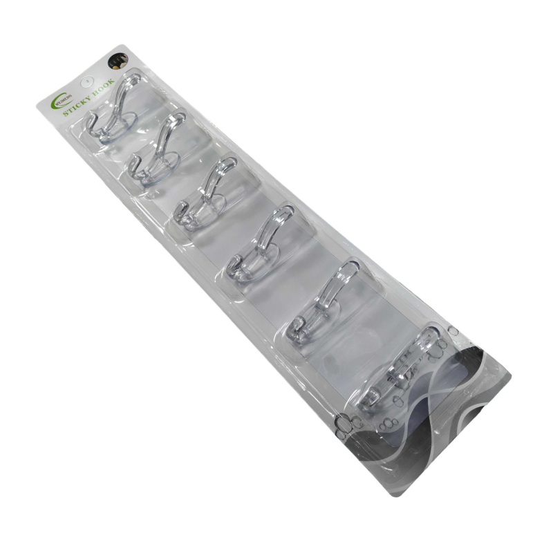 Αυτοκόλλητη κρεμάστρα 6 θέσεων, ιδανική για το μπάνιο και την κουζίνα σας. Εύκολη και σταθερή τοποθέτηση σε πλακάκι τοίχου χάρη στο ισχυρό αυτοκόλλητο που διαθέτει στην πίσω όψη, χωρίς να προκαλεί αλλοιώσεις. Υλικό: πλαστικό.Διαστάσεις: 35 x 6.3cm