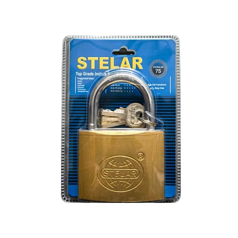 Λουκέτο ασφαλείας, ορειχάλκινο με ατσάλινο λαιμό, κοντόλαιμο, μεγέθους 75mm, με σετ κλειδιών.