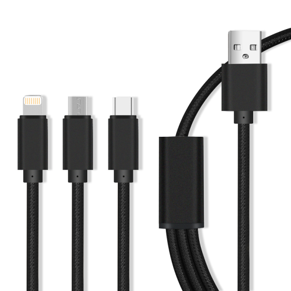MAXLIFE USB TO MICRO USB | TYPE C | LIGHTNING DATA CABLE 1m 2.1A black