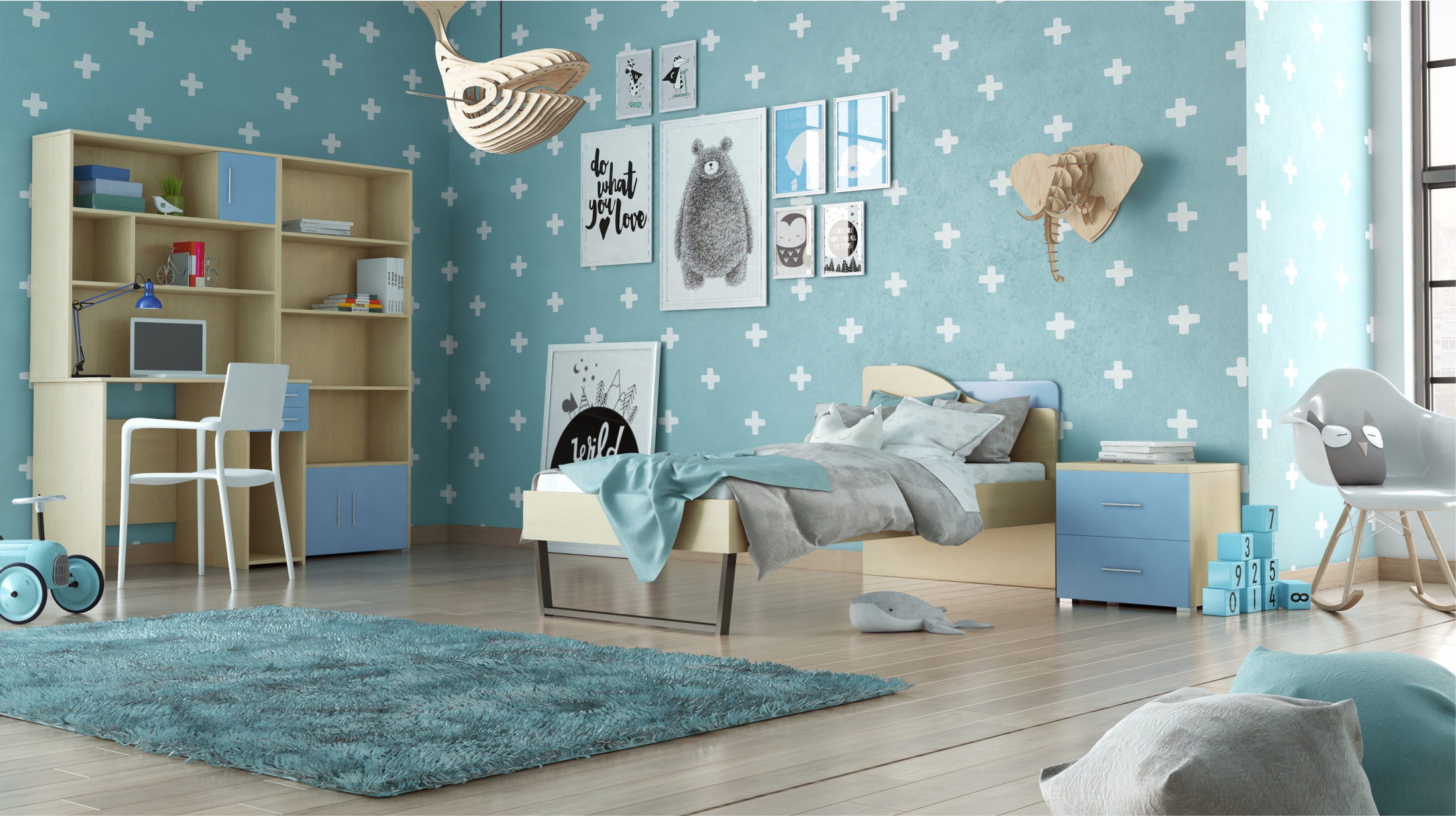Παιδικό δωμάτιο “ΤΟΞΟ” σετ 5 τμχ σε χρώμα δρυς-μπλε