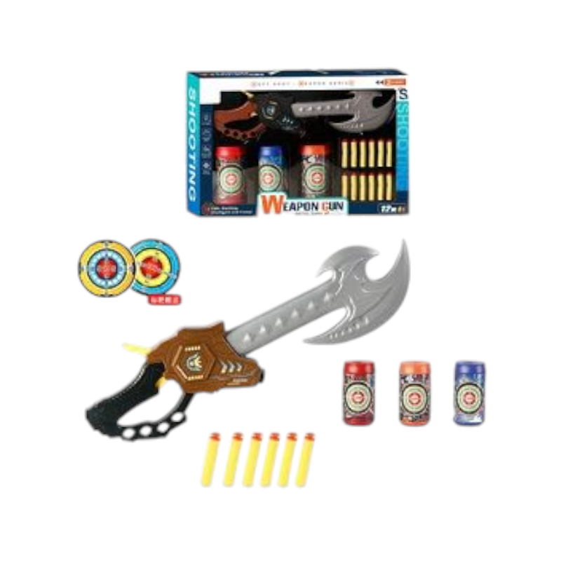 Παιδικό όπλο στόχου-Soft Gun τσεκούρι, με υπέροχο πολύχρωμο σχεδιασμό, μαλακές σφαίρες και αξεσουάρ. Όπλισέ το και ετοιμάσου για ένα συναρπαστικό παιχνίδι δράσης!Διαστάσεις συσκευασίας: 47.5 x 31.5 x 8cm.Πληροί όλα τα πρότυπα ασφαλείας. Κατάλληλο για παιδιά ηλικίας 3 ετών και άνω.