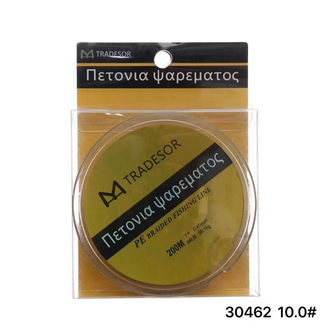 Η Tradesor, βάσει της υψηλής τεχνογνωσίας και του προηγμένου εξοπλισμού που χρησιμοποιεί, έχει κατασκευάσει μια σειρά από πετονιές ψαρέματος υψηλής ποιότητας και αντοχής. Ο τρόπος με τον οποίο έχουν σχεδιαστεί εξασφαλίζει στην πετονιά μηδενική μνήμη, ταχεία βύθιση ενώ παράλληλα είναι εξαιρετικά μαλακή παρά την μεγάλη αντοχή της. Είναι 100% αόρατη με μεγάλες αντοχές στον κόμπο και στα γδαρσίματα. Μέγεθος: 200m/#10Τύπος: νήμα