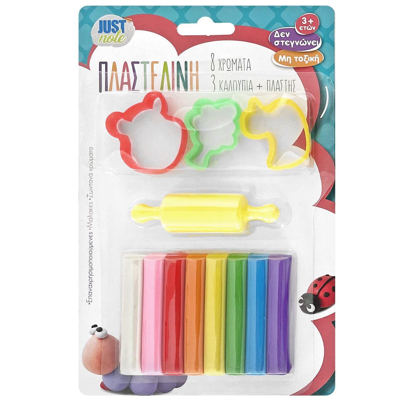 Σετ=8 χρώματα, 3 καλούπια, πλάστης 100gr net