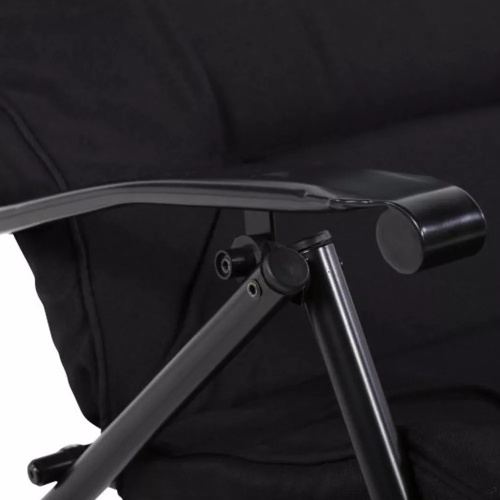 Πολυθρόνα μεταλική Relax βαρέως τύπου πτυσσόμενη με ανάκλιση 2θέσων με ενιαίο μαξιλάρι καθίσματος-πλάτης πάχους 5εκ. απο ύφασμα σε μαύρο χρώμα 180γρ.Διαστάσεις 68x74x93εκ.