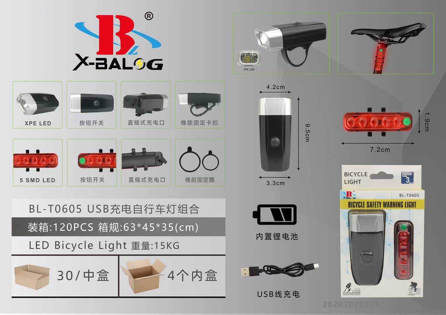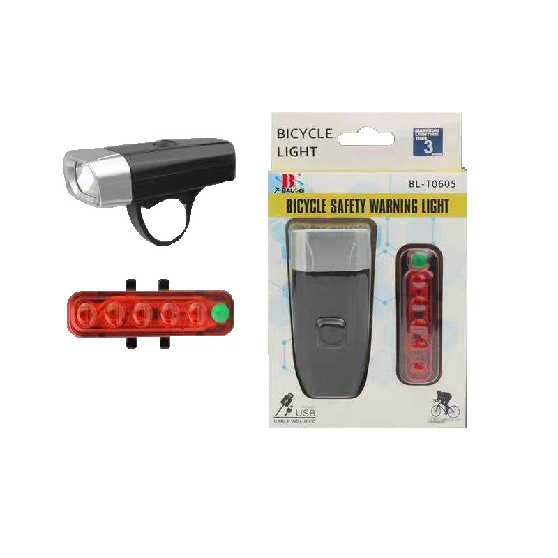 Επαναφορτιζόμενο φως ποδηλάτου LED – T0605 με εμπρόσθιο προβολάκι και BacklightΠεριλαμβάνεται καλώδιο φόρτισης USB και λουράκια τοποθέτησης.Επαναφορτιζόμενη μπαταρία λιθίου.