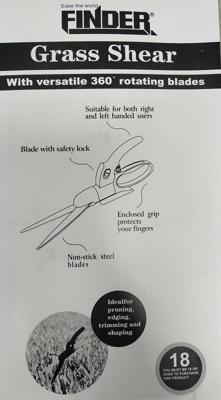 Ψαλίδι κοπής χλόης/γρασιδιού Finder, με εργονομική λαβή κατάλληλο για δεξιόχειρη και αριστερόχειρη χρήση. Μέγεθος 14”.