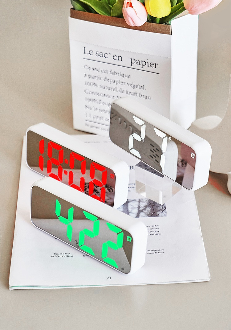 Ψηφιακό ρολόι–Ξυπνητήρι σε μοντέρνο σχεδιασμό και πρακτικό μίνι μέγεθος που μπορεί να τοποθετηθεί παντού και να προσδώσει σύγχρονη νότα στο χώρο σας. Mirror ScreenΏρα 12/24, Θερμοκρασία,Πλήκτρα ελέγχου,Sleep Mode – απενεργοποίηση φωτισμούΛειτουργεί με καλώδιο τροφοδοσίας USB ή 3 μπαταρίες ΑΑΑ (περιλαμβάνεται το καλώδιο – Δεν περιλαμβάνεται αντάπτορας πρίζας και μπαταρίες).Διαστάσεις: 14.6 x 6 x 4cm*Διαθέσιμο σε 2 διαφορετικά χρώματα φωτισμού: πράσινο, κόκκινο.- Σημειώστε το χρώμα προτίμησής σας στις σημειώσεις παραγγελίας – Αποστολή κατόπιν διαθεσιμότητας.