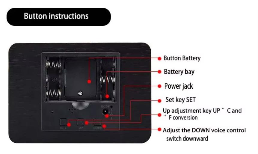 Ψηφιακό ρολόι–Ξυπνητήρι LED, σε ιδιαίτερο σχεδιασμό με εφέ ξύλου. Πρακτικό μέγεθος που μπορεί να τοποθετηθεί παντού και να προσδώσει σύγχρονη νότα στο χώρο σας.Διαθέτει ξυπνητήρι με λειτουργία snooze Ενδείξεις: ΏραΗμερομηνία ΘερμοκρασίαΡύθμιση φωτεινότηταςΤροφοδοσία με μπαταρίες 3 x AAA (δεν περιλαμβάνονται) ή μέσω καλωδίου USB 5V (περιλαμβάνεται)Διαστάσεις: 10 * 7 * 4 cm.