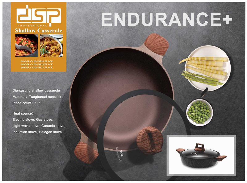 Ρηχή κατσαρόλα αντικολλητική με καπάκι – 3.9L – CA004-BS28-Black – DSP – 563776