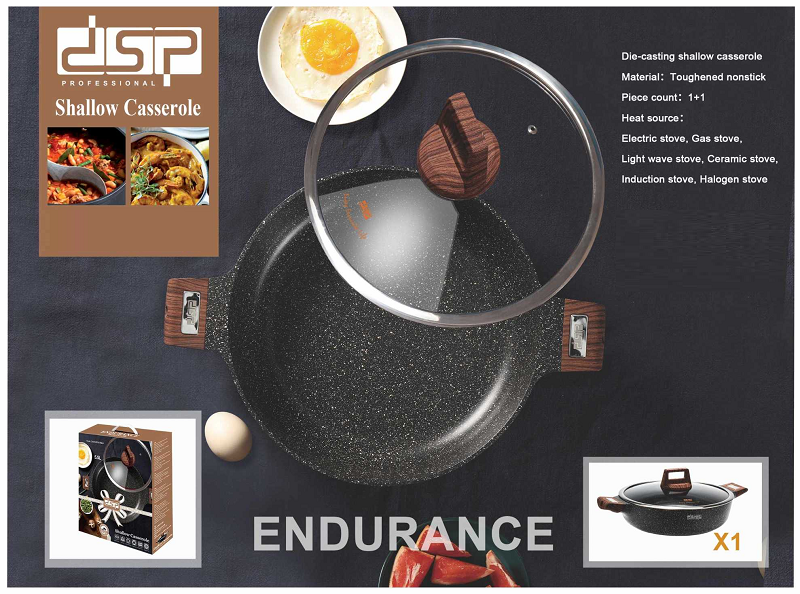 Ρηχή κατσαρόλα αντικολλητική με καπάκι – 5.5L – CA005-BS32-Black – DSP – 563905