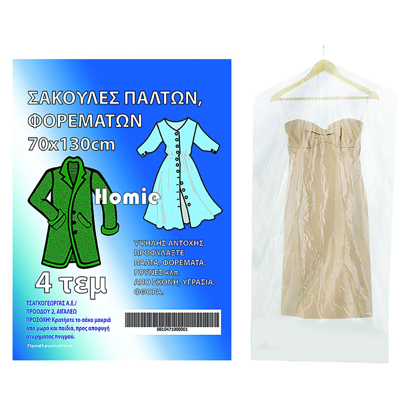 Σετ=4τεμ σακούλες αποθήκευσης παλτών-φορεμάτων 130x70cm