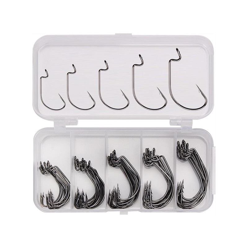 Σετ αγκίστρια ψαρέματος 50 τεμάχια, 5 μεγεθών, 10 τεμάχια ανά μέγεθος, σε πρακτική κασετίνα.Υλικό: carbon steel