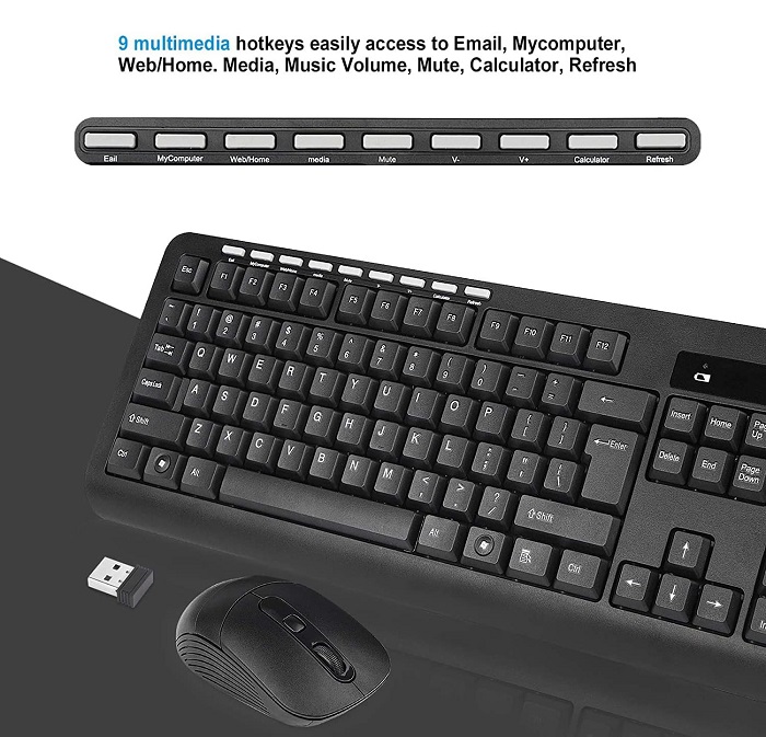 Σετ ασύρματο πληκτρολόγιο & ποντίκι με λεπτό κομψό σχεδιασμό, υψηλής απόδοσης και με άμεση ασύρματη σύνδεση Bluetooth για έυκολη χρήση χωρίς καλώδια. Ταχύτητα: 2,4 GHz, Πληκτρολόγιο 78 πλήκτρων, 9 Multimedia buttons, Απόσταση λειτουργίας: έως 10 μέτρα (χωρίς εμπόδιο), Μπαταρία: 1 * μπαταρία AAA για πληκτρολόγιο, 2 * μπαταρίες AAA για το ποντίκι (δεν περιλαμβάνονται), Τάση λειτουργίας πληκτρολογίου: 3V, Ρεύμα: 1,5ma, Ρύθμιση DPI 1000-1600, Μέγεθος πληκτρολογίου: 45*16*3cm, Βάρος πληκτρολογίου: 330g, Μέγεθος ποντικιού: 11,5*6*4cm, Βάρος ποντικιού: 58g, Διαστάσεις συσκευασίας: 52.5*17*4cm.Διαθέτει USB δέκτη bluetooth.