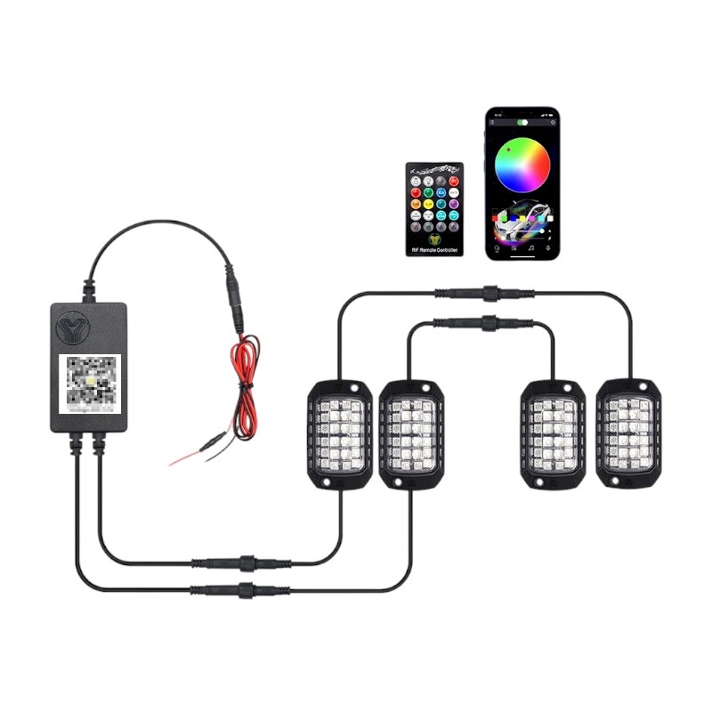 Σετ διακοσμητικά φώτα πλαισίου αυτοκινήτου LED με τηλεχειρισμό μέσω εφαρμογής Bluetooth και τηλεχειριστηρίου που προσφέρουν μια ευρεία γκάμα χρωμάτων και εφέ φωτισμού.Τάση: 12V DC.Έλεγχος: Ελέγχεται ασύρματα μέσω εφαρμογής smartphone (iOS και Android) μέσω Bluetooth, επιτρέποντας την προσαρμογή χρωμάτων, φωτεινότητας, ταχύτητας και λειτουργιών.Περιλαμβάνεται τηλεχειριστήριο.Περιλαμβάνει τέσσερις αδιάβροχους προβολείς LED RGB. Συνολική ισχύς 60W.Συνιστάται εγκατάσταση από εξειδικευμένο επαγγελματία.