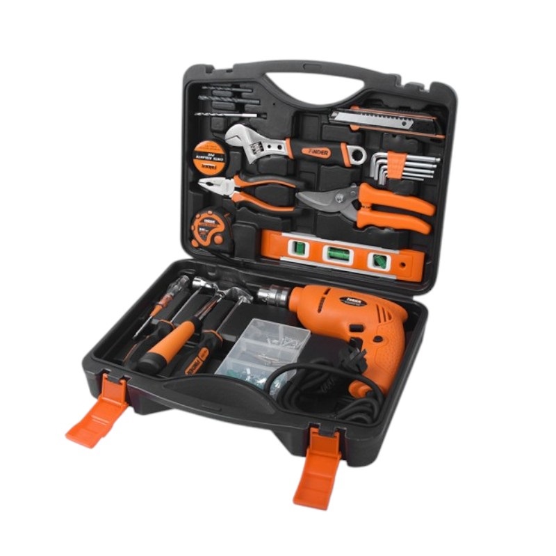 Πλήρες σετ εργαλείων Finder σε σκληρή εργαλειοθήκη μεταφοράς.Περιεχόμενα:Αλφάδι 1 τεμ.Ηλεκτρικό τρυπάνι 1 τεμ.Κασετίνα με βίδες 40 τεμ.Στριφτό τρυπάνι 3 τεμ.Ψαλίδι κλαδέματος 1 τεμ.6*100 κατσαβίδια 2 τεμ.Ρυθμιζόμενο κλειδί 8″” 1 τεμ.Εξάγωνο κλειδί allen με μπίλια 5 τεμ.250g σφυρί 1 τεμ.Ταινία PVC 1 τεμ.Κοπίδι 1 τεμ.Μεζούρα 3m 1 τεμ.Πένσα 6″” 1 τεμ.2-way tester δοκιμαστικό κατσαβίδι 1 τεμ.Πλαστική εργαλειοθήκη 1 τεμ.