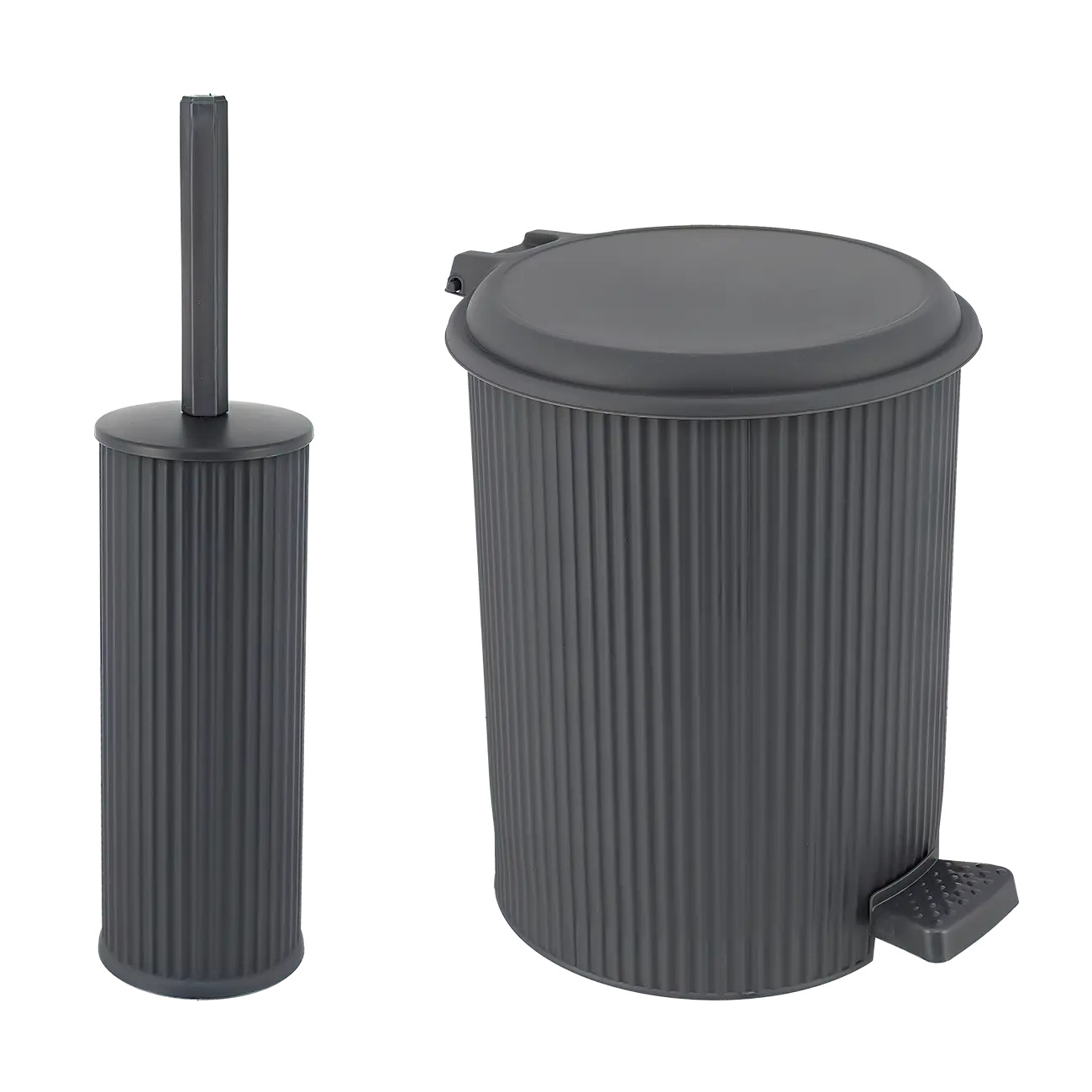 Σετ πεντάλ πλαστικό 7 lit και βούρτσα για την τουαλέτα ,πολύ καλής ποιότητας σε ανθρακί χρώμα.-Η χρωματική απόδοση του προϊόντος ενδέχεται να διαφέρει ελαφρώς σε σχέση με την φωτογραφική απεικόνισή του στην οθόνη σας.