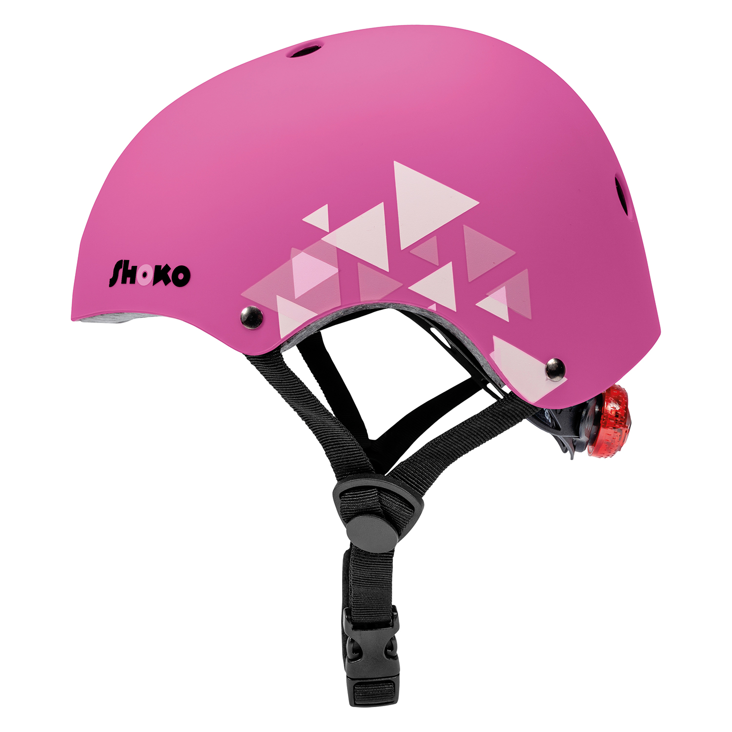 Το κράνος Shoko είναι εδώ για τη μέγιστη ασφάλεια των παιδιών σας. – Είναι ειδικά κατασκευασμένο για παιδιά με περίμετρο κεφαλής 51-54εκ (μέγεθος M). – Είναι απαραίτητο για την προστασία του παιδιού καθώς κάνει τη βόλτα του με το scooter του ή άλλα μη μηχανοκίνητα οχήματα. – Το φως που διαθέτει εξασφαλίζει την ασφάλεια του παιδιού και τις νυχτερινές ώρες. – Προσαρμόζεται εύκολα χάρη στο κομβίο που διαθέτει στο πίσω μέρος αλλά και στους ρυθμιζόμενους ιμάντες κάτω από το σαγόνι. – Το εξωτερικό του κάλυμμα είναι ειδικά διαμορφωμένο ώστε να απορροφά την ενέργεια από ένα πιθανό χτύπημα και στο εσωτερικό του αποτελείται από αφρώδη προστατευτικά σφουγγαράκια ώστε να είναι άνετο, μαλακό και φιλικό προς το κεφάλι του παιδιού. – Εκτός από την προστασία που παρέχει, χαρίζει επίσης στυλ χάρη στον εντυπωσιακό του σχεδιασμό και χρώμα. Έτσι, το παιδί σας κάνει τις βόλτες του με ασφάλεια και στυλ, τραβώντας τα βλέμματα.