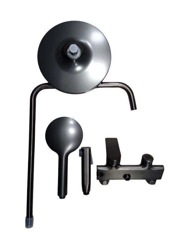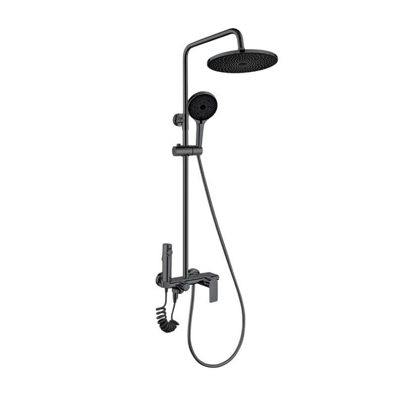 Στήλη ντουζιέρας 3 εξόδων, με μπαταρία αναμεικτική, με μοντέρνο σχεδιασμό που θα προσδώσει ιδιαίτερη αισθητική στο μπάνιο σας. Διαθέτει 3 εξόδους νερού για κάθε ανάγκη σας και στιβαρή ανθεκτική κατασκευή με χρωμέ φινίρισμα. Τηλέφωνο ντους με σιλικονούχες εκροές για αποφυγή συσσώρευσης αλάτων.Το κάτω μέρος της μπαταρίας διαθέτει ανάγλυφο μέταλλο που βοηθά στην αποφυγή συγκέντρωσης αλάτων Διανομέα κολόνας. Σπιράλ τηλεφώνου. Στήριγμα τηλεφώνου ρυθμιζόμενο, ασφαλείας. Στήριξη τοίχου. Ύψος: 1.30m. Διαστάσεις συσκευασίας: 75x32x15cm.Χρώμα: γκρι-ανθρακί