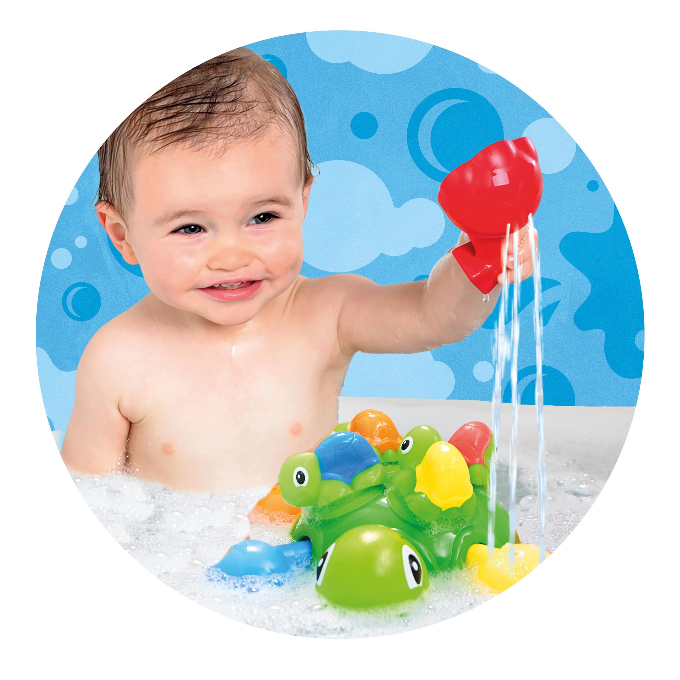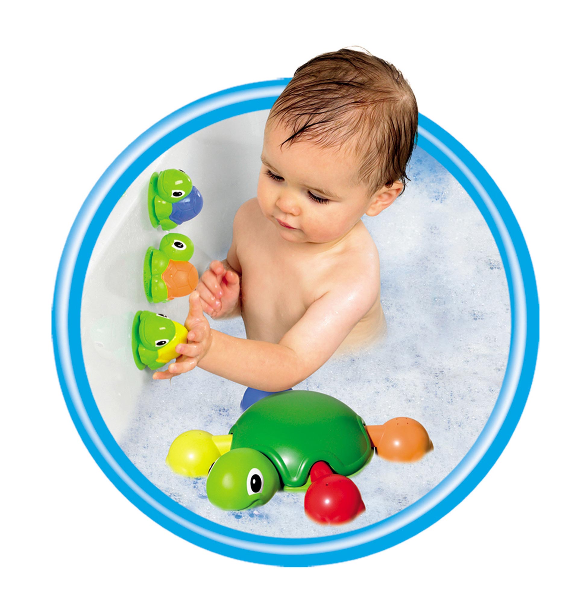 Μαμά χελώνα με 4 χαριτωμένα χελωνάκια. Τα παιδάκια της χελώνας βρίσκονται πάνω στο καβούκι της μαμάς χελώνας! Ρίχνουν επίσης νερό για να προσθέσουν διασκέδαση στο μπάνιο. Αφαιρέστε το κέλυφος της μαμάς χελώνας για να ανακαλύψετε τα 4 πόδια κυπελάκια σε έντονα χρώματα. Αφαιρέστε τα πόδια για να ρίξετε νερό στο ντους για να διασκεδάσετε και μετά ταξινομήστε τα ξανά στη θέση τους! Το Turtle Tots Bath Time Fun δίνει στα παιδιά σας πολλούς τρόπους να παίξουν στο μπάνιο Παίξτε παιχνίδια αντιστοίχισης χρωμάτων, συνδυάζοντας τα πολύχρωμα Tots σε κάθε γωνία Σηκώστε το γιγάντιο κέλυφος για να αφαιρέσετε τα έντονα χρώματα των ποδιών Υπάρχει διασκεδαστική ταξινόμηση σχημάτων: κάθε πόδι τοποθετείται προσεκτικά στην ειδική του θέση Κατάλληλο για ηλικίες 12 μηνών και άνω Ένα τέλειο δώρο για γενέθλια, χριστουγεννιάτικο δώρο ή για τη γιορτή του Πάσχα. Ένα εύκολο στη μεταφορά παιχνίδι που θα είναι δίπλα στο μικρό σας στα βασικά στάδια της ανάπτυξής του. Η σειρά βρεφικών και παιδικών παιχνιδιών Toomies εκπαιδεύουν τα παιδιά και τους προσφέρουν ατελείωτες ώρες διασκέδασης. Είναι εξαιρετικής ποιότητας και κατασκευάζονται σύμφωνα με τα Ευρωπαϊκά Πρότυπα και τους κανονισμούς ασφαλείας. Τα περισσότερα παιχνίδια ενώ παράγουν ήχο και κίνηση δε χρειάζονται μπαταρίες ενώ όλα έχουν παραπάνω από έναν τρόπο παιχνιδιού. Σκοπός είναι να χαρίσει στο παιδί ατελείωτες ώρες διασκέδασης!