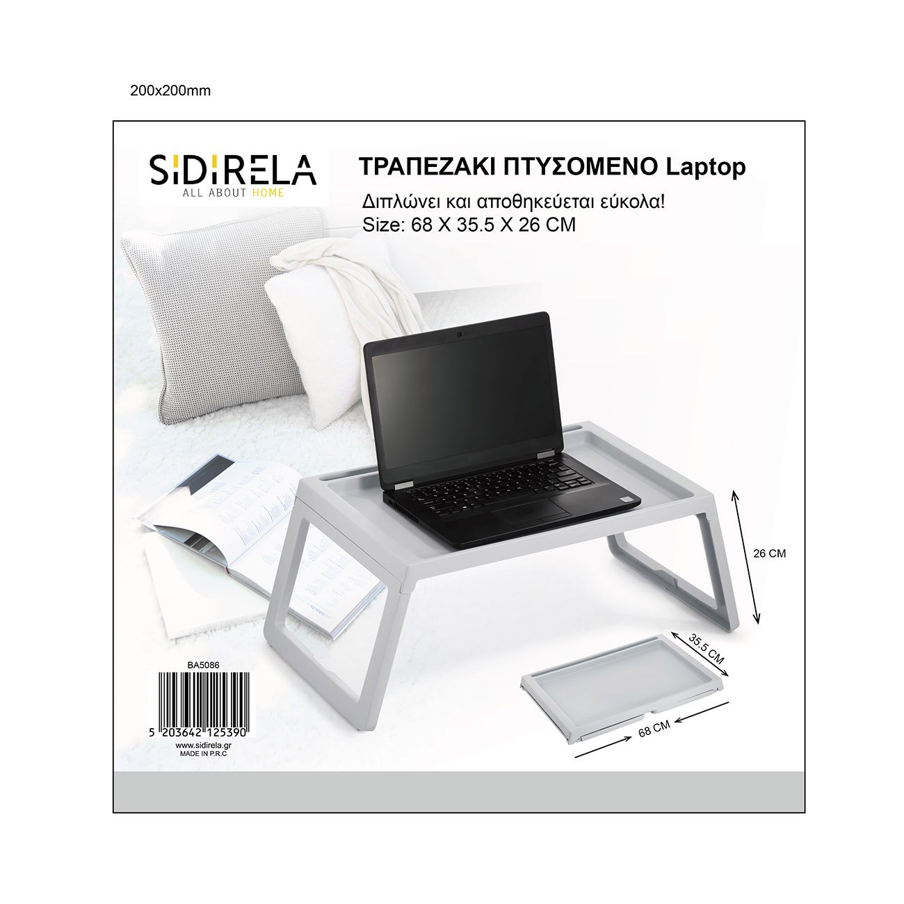Τραπεζάκι βοηθητικό για χρήση λάπτοπ κατασκευασμένο από μελαμίνη, πτυσσόμενο. Ιδανική επιλογή για τον προσωπικό σας χώρο ή τον επαγγελματικό καθώς μπορείτε να το χρησιμοποιήσετε σε κρεβάτι ή καναπέ. Διαστάσεις:68x35x26εκ.