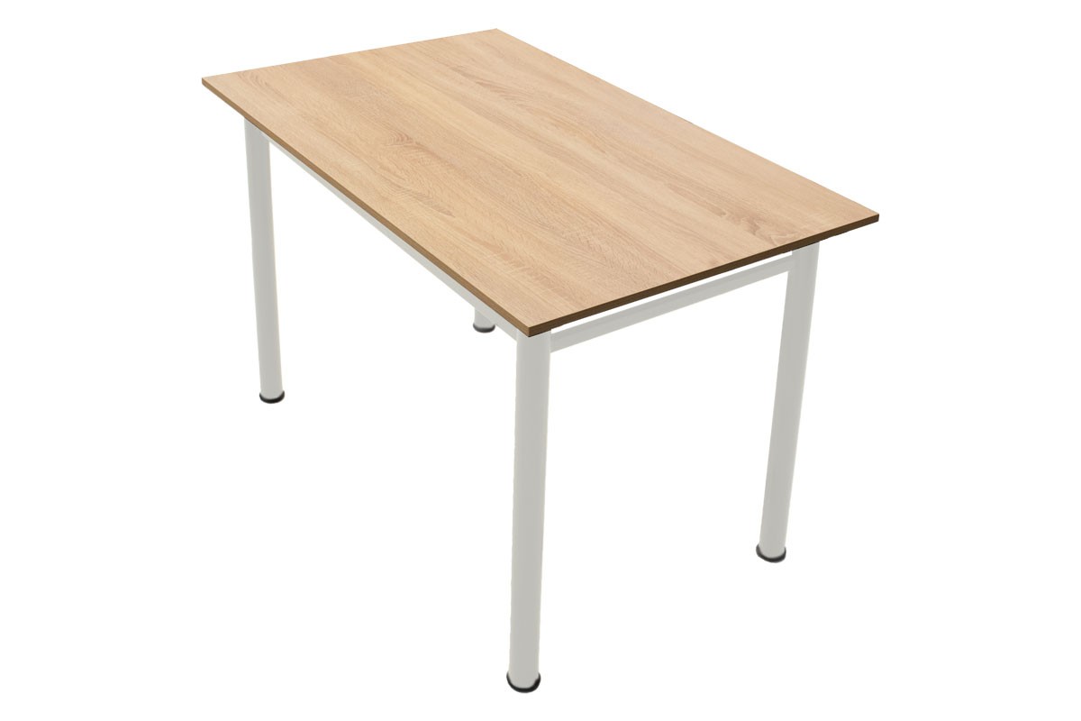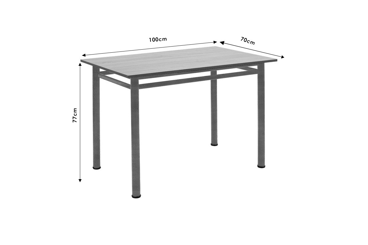 Τραπέζι κατασκευασμένο από σταθερό μεταλλικό σφυρήλατο σκελετό σε εκρού χρώμα και επιφάνεια από μελαμίνη εξαιρετικής ποιότητας και αντοχής στη φθορά και στο χρόνο σε δρυς χρώμα. Τα τελειώματα των ποδιών έχουν πλαστικά πέλματα για την προστασία του πατώματος από ανεπιθύμητες φθορές. Ιδανική και πρακτική επιλογή που θα ανανεώσει τη διακόσμηση του χώρου που θα το τοποθετήσετε και θα βοηθήσει στην οργάνωσή του. Κατάλληλο για τον προσωπικό και τον επαγγελματικό σας χώρο.Σημείωση: Το προιόν παραδίδεται μονταρισμένο, όπως απεικονίζεται στη φωτογραφίαΔιαστάσεις:100x60x77εκ.