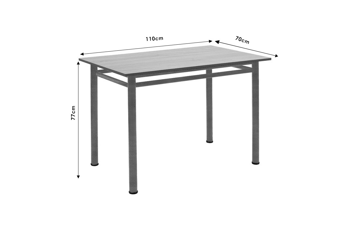 Τραπέζι κατασκευασμένο από σταθερό μεταλλικό σφυρήλατο σκελετό σε εκρού χρώμα και επιφάνεια από μελαμίνη εξαιρετικής ποιότητας και αντοχής στη φθορά και στο χρόνο σε δρυς χρώμα. Τα τελειώματα των ποδιών έχουν πλαστικά πέλματα για την προστασία του πατώματος από ανεπιθύμητες φθορές. Ιδανική και πρακτική επιλογή που θα ανανεώσει τη διακόσμηση του χώρου που θα το τοποθετήσετε και θα βοηθήσει στην οργάνωσή του. Κατάλληλο για τον προσωπικό και τον επαγγελματικό σας χώρο.Σημείωση: Το προιόν παραδίδεται μονταρισμένο, όπως απεικονίζεται στη φωτογραφίαΔιαστάσεις:110x70x77εκ.