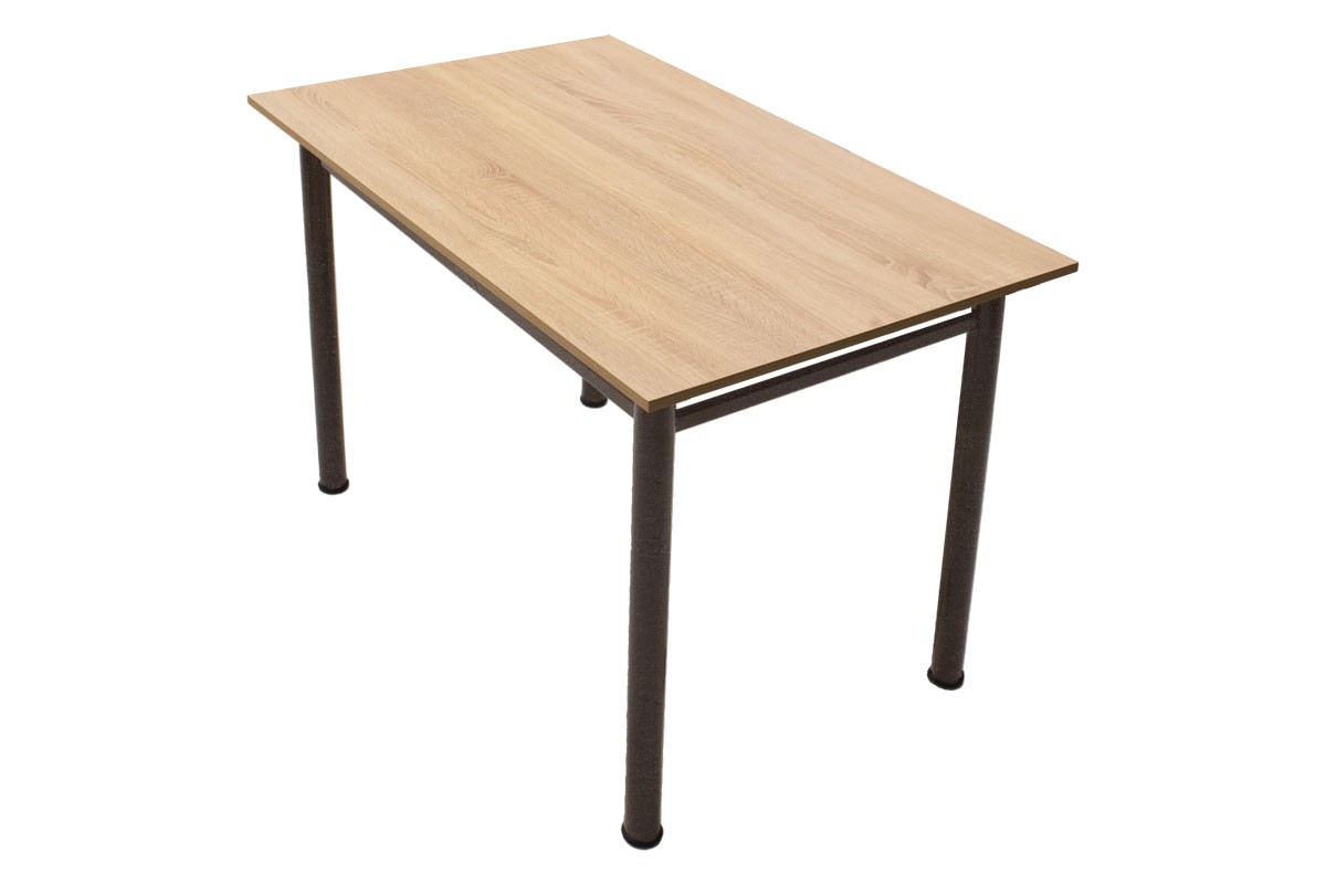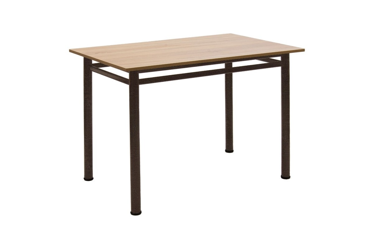 Τραπέζι κατασκευασμένο από σταθερό μεταλλικό σφυρήλατο σκελετό σε καφέ σφυρήλατο χρώμα και επιφάνεια από μελαμίνη εξαιρετικής ποιότητας και αντοχής στη φθορά και στο χρόνο σε δρυς χρώμα. Τα τελειώματα των ποδιών έχουν πλαστικά πέλματα για την προστασία του πατώματος από ανεπιθύμητες φθορές. Ιδανική και πρακτική επιλογή που θα ανανεώσει τη διακόσμηση του χώρου που θα το τοποθετήσετε και θα βοηθήσει στην οργάνωσή του. Κατάλληλο για τον προσωπικό και τον επαγγελματικό σας χώρο.Σημείωση: Το προιόν παραδίδεται μονταρισμένο, όπως απεικονίζεται στη φωτογραφίαΔιαστάσεις:100x60x77εκ.